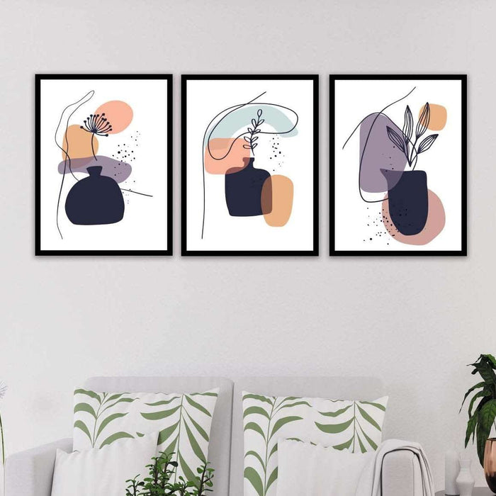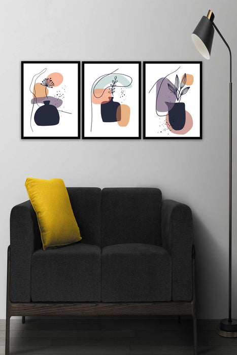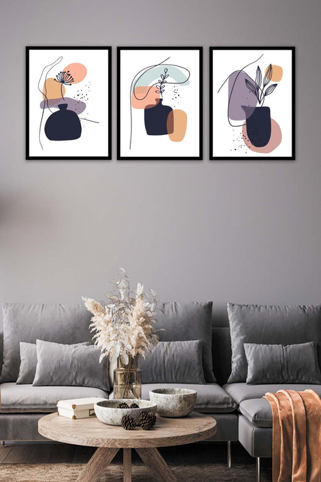 Orijinal World of Walls 3 Parça Bohem Tarzında Sanatsal Siyah Çerçeve Görünümlü Dijital Baskı Duvar Tablo Seti