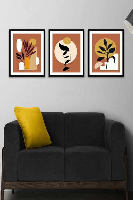Orijinal World of Walls 3 Parça Bohem Tarzında Sanatsal (Siyah Çerçeve Görünümlü) Uv Baskı Mdf Ahşap Duvar Tablo Seti