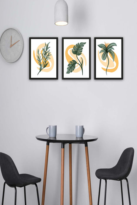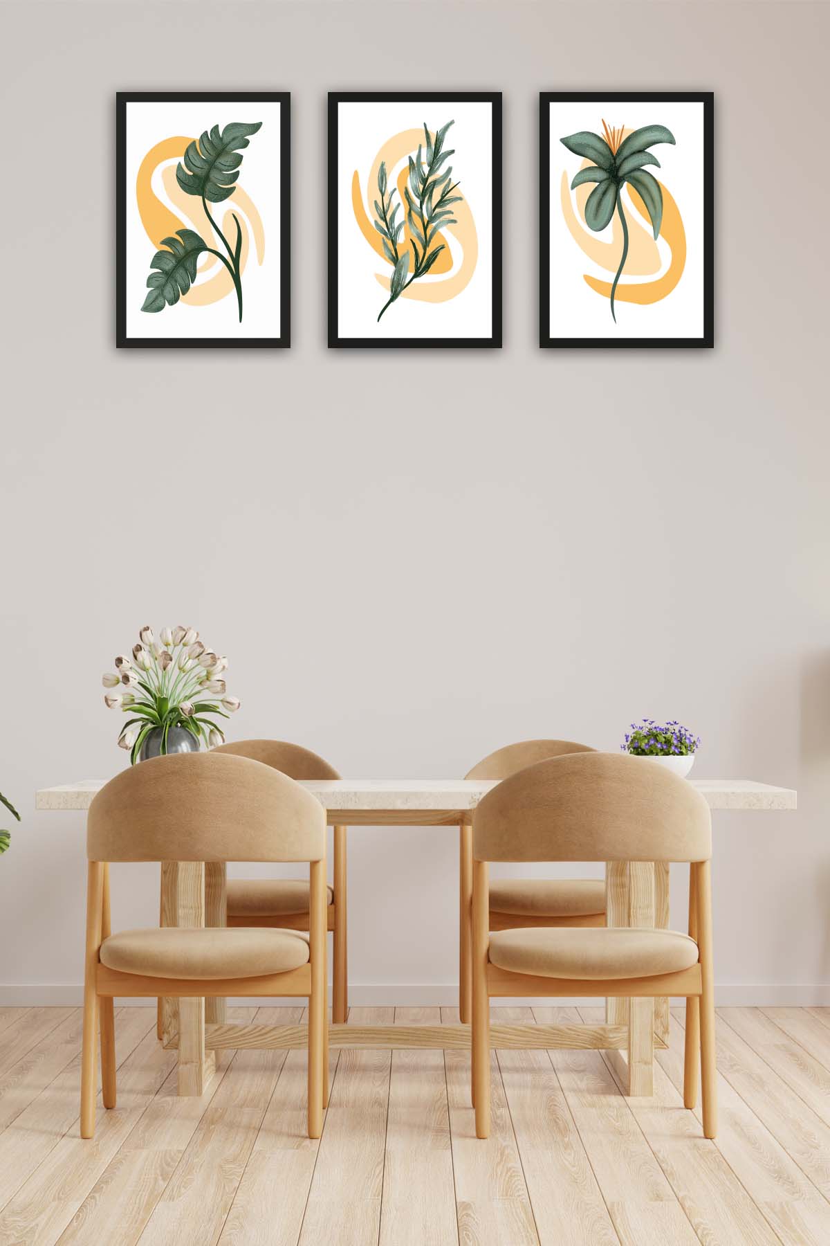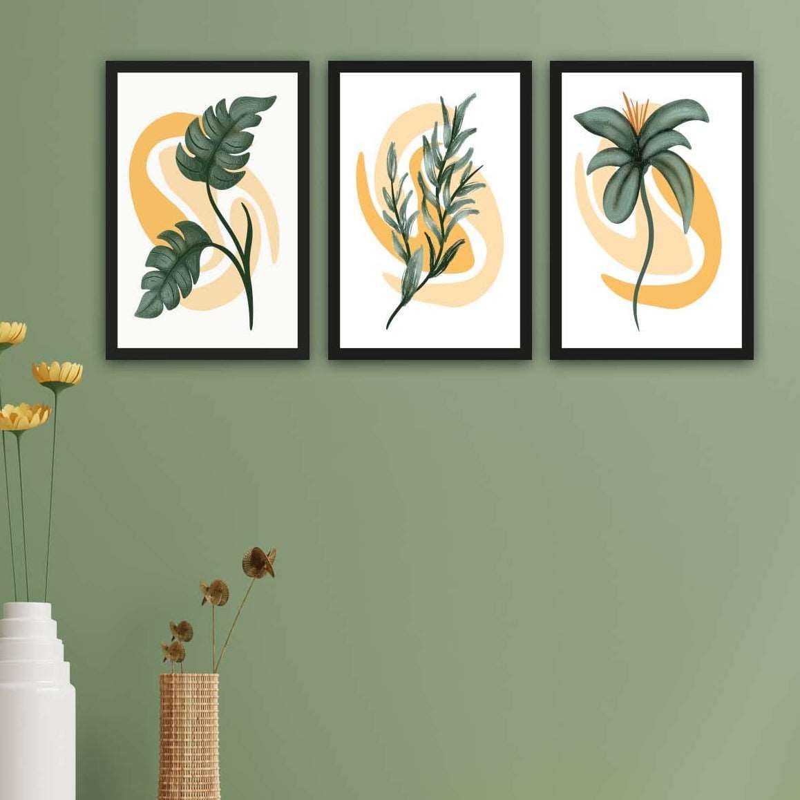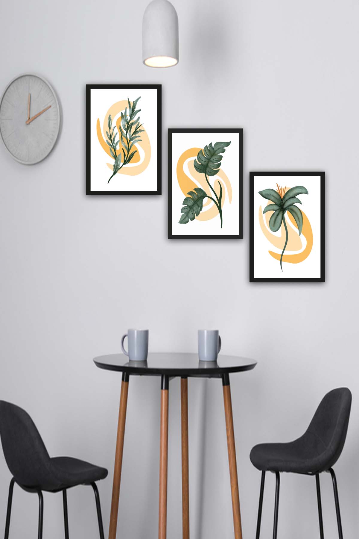 Orijinal World of Walls 3 Parça Botanik Tarzda (Siyah Çerçeve Görünümlü) Uv Baskı Duvar Tablo Seti