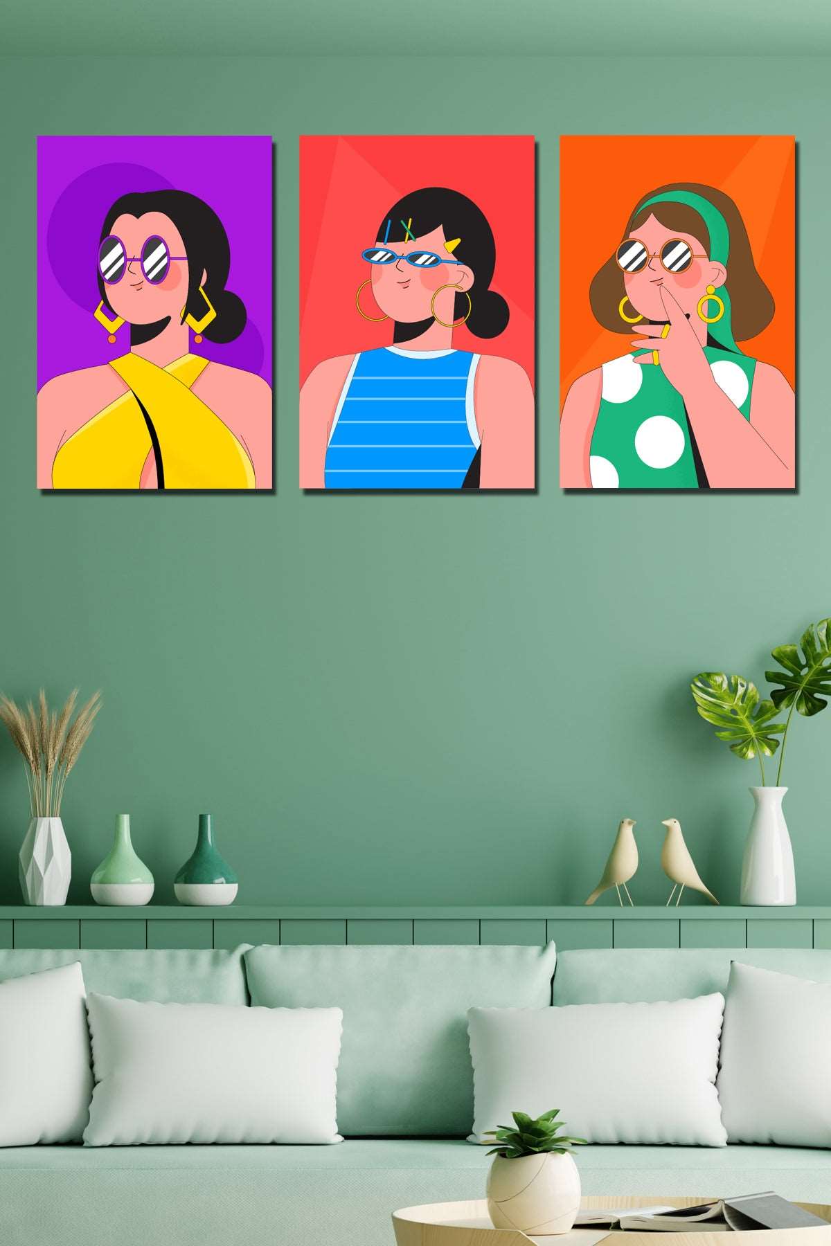 Orijinal World of Walls 3 Parça Kız Dijital Baskı Ahşap Duvar Tablo Seti