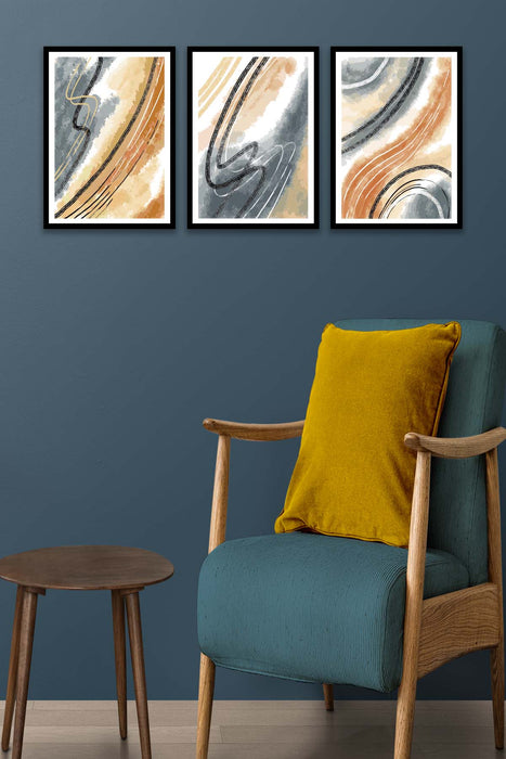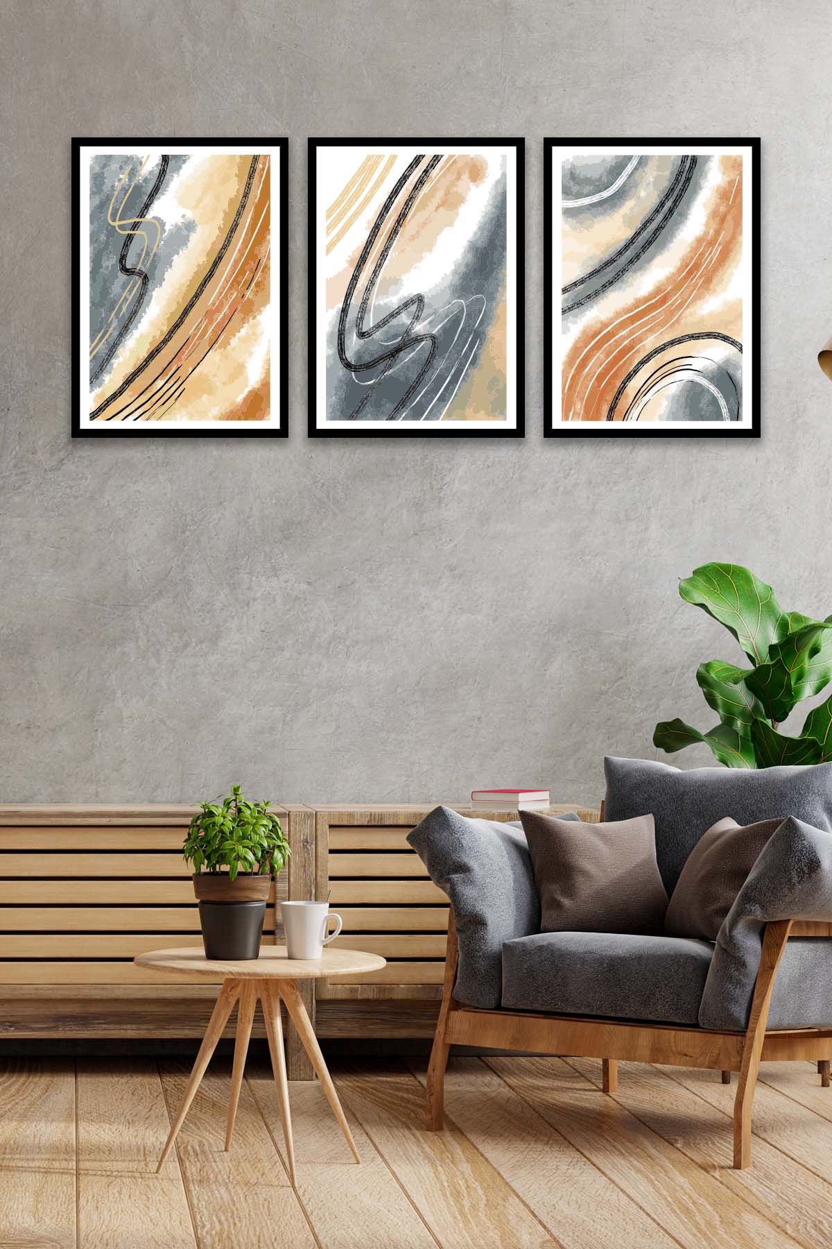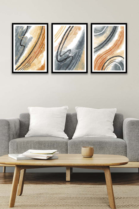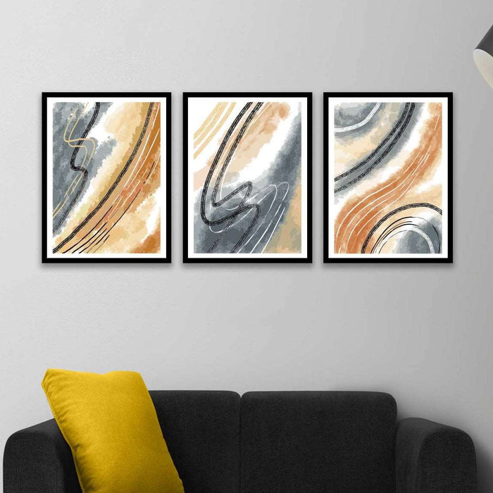 Orijinal World of Walls 3 Parça Mermer Deseni Tarzında Sanatsal (Siyah Çerçeve Görünümlü) Uv Baskı Mdf Ahşap Duvar Tablo Seti