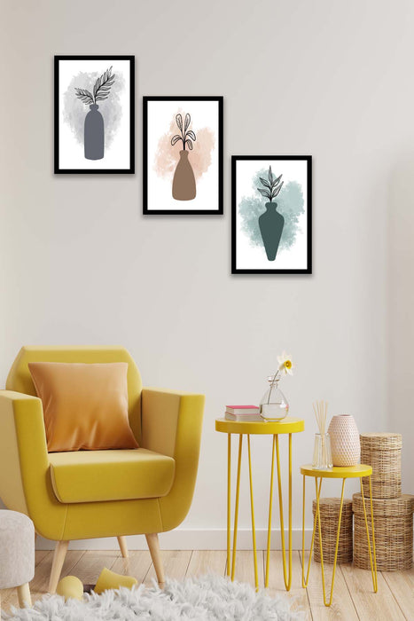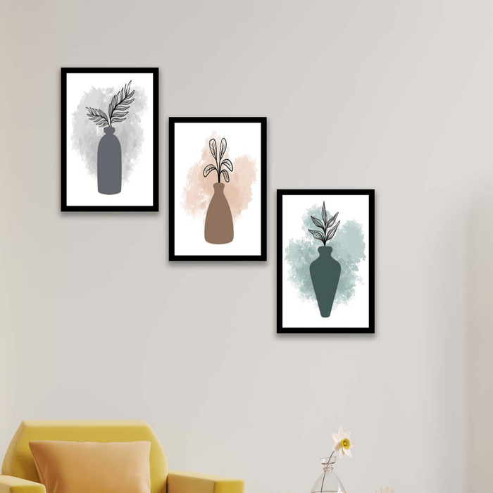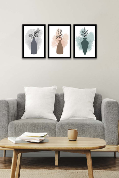 Orijinal World of Walls 3 Parça Modern Sanatsal Suluboya Tarzda (Siyah Çerçeve Görünümlü) Uv Baskı Mdf Ahşap Duvar Tablo Seti