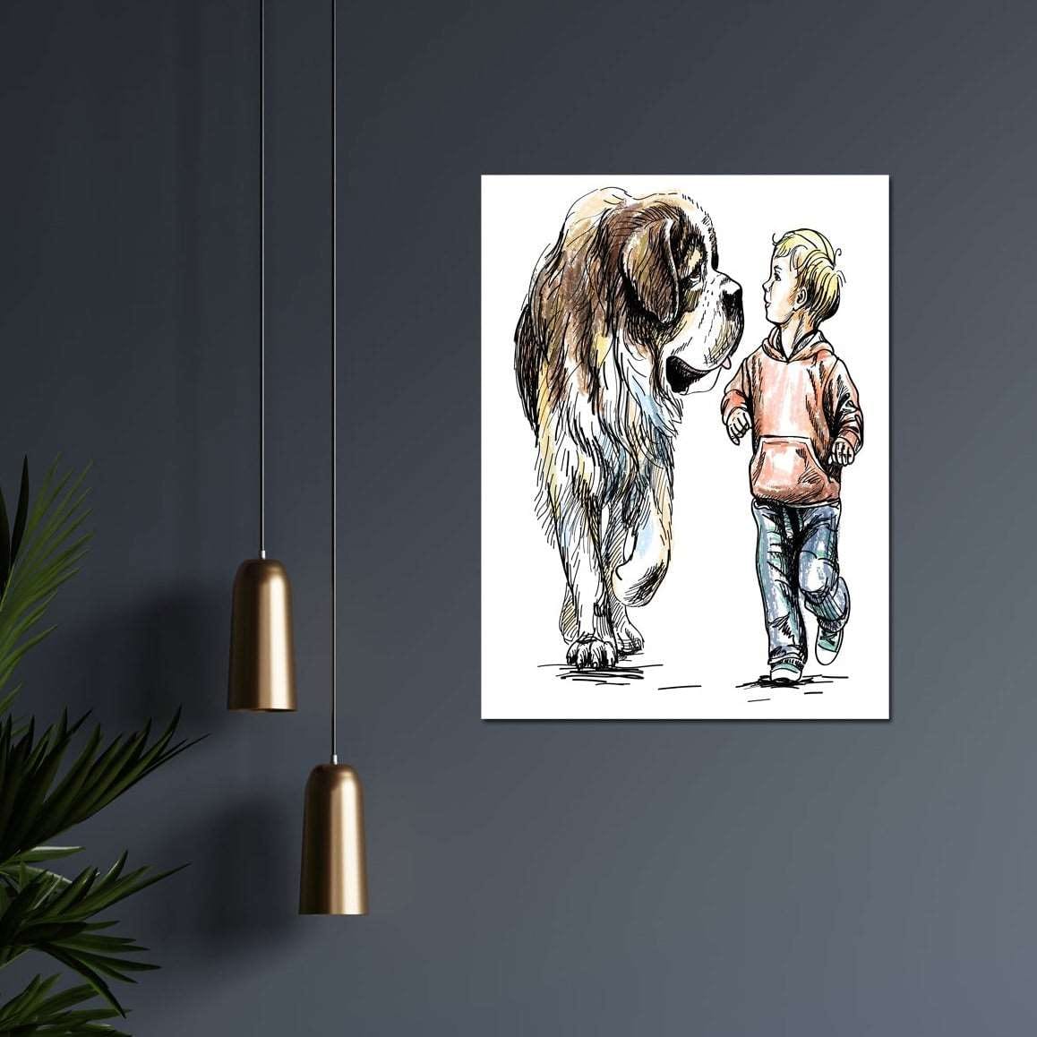 Orijinal World of Walls 30x40 Çizgisel Sanatsal Duvar Tablo St Bernard and Child.