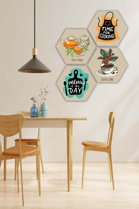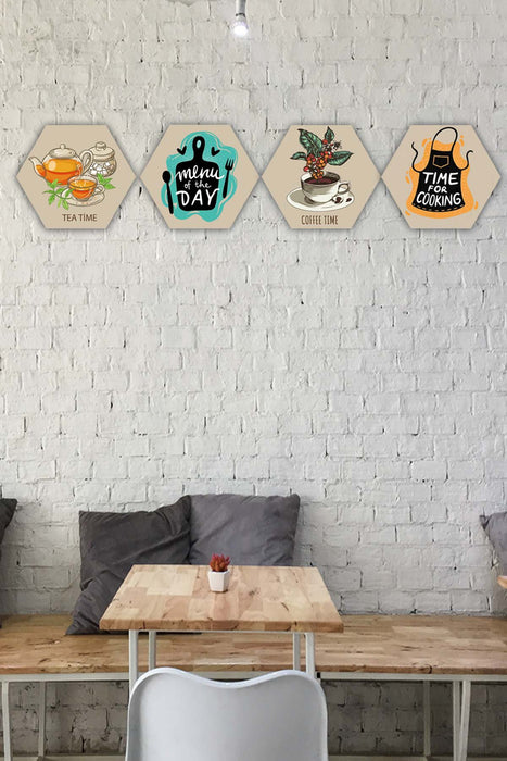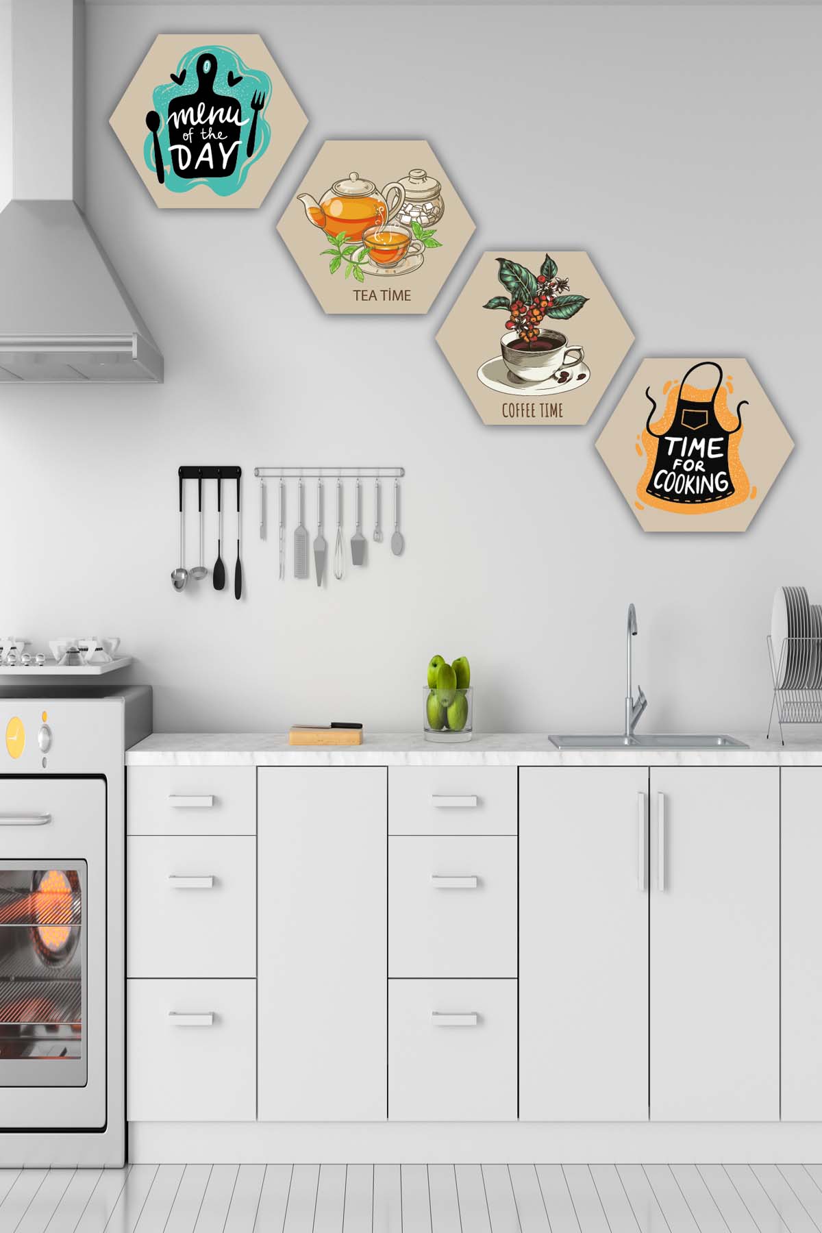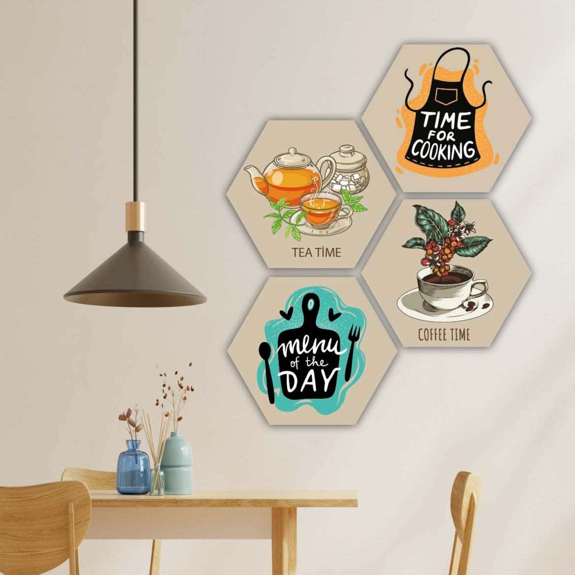 Orijinal World of Walls 4 Parça Altıgen Mutfak Petek Tasarım Mdf Ahşap Duvar Ahşap Duvar Tablo Seti