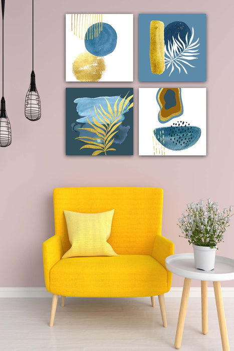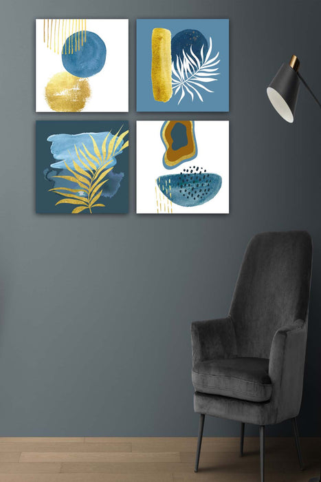 Orijinal World of Walls 4 Parça Suluboya Botanik Tarzda Uv Baskı Duvar Tablo Seti