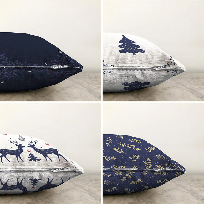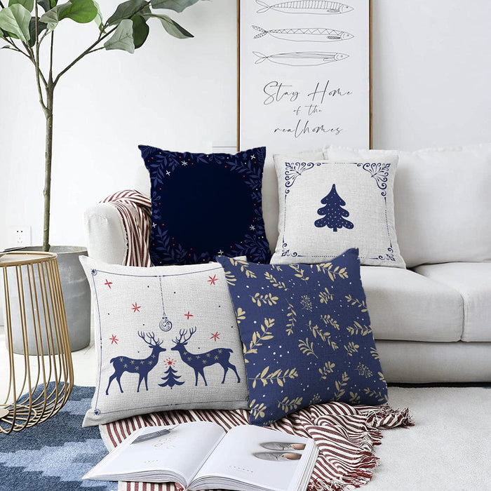 4lü Lacivert Yılbaşı Temalı Dijital Baskılı Modern Şönil Kırlent Kılıfı Seti