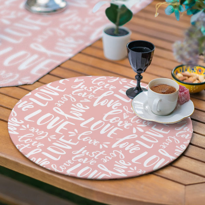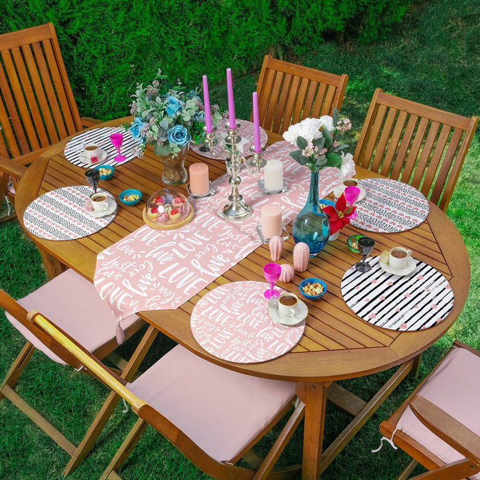 6+1li Çizgili Kalp Tasarımlı Pembe Aşk Temalı Supla Runner Seti