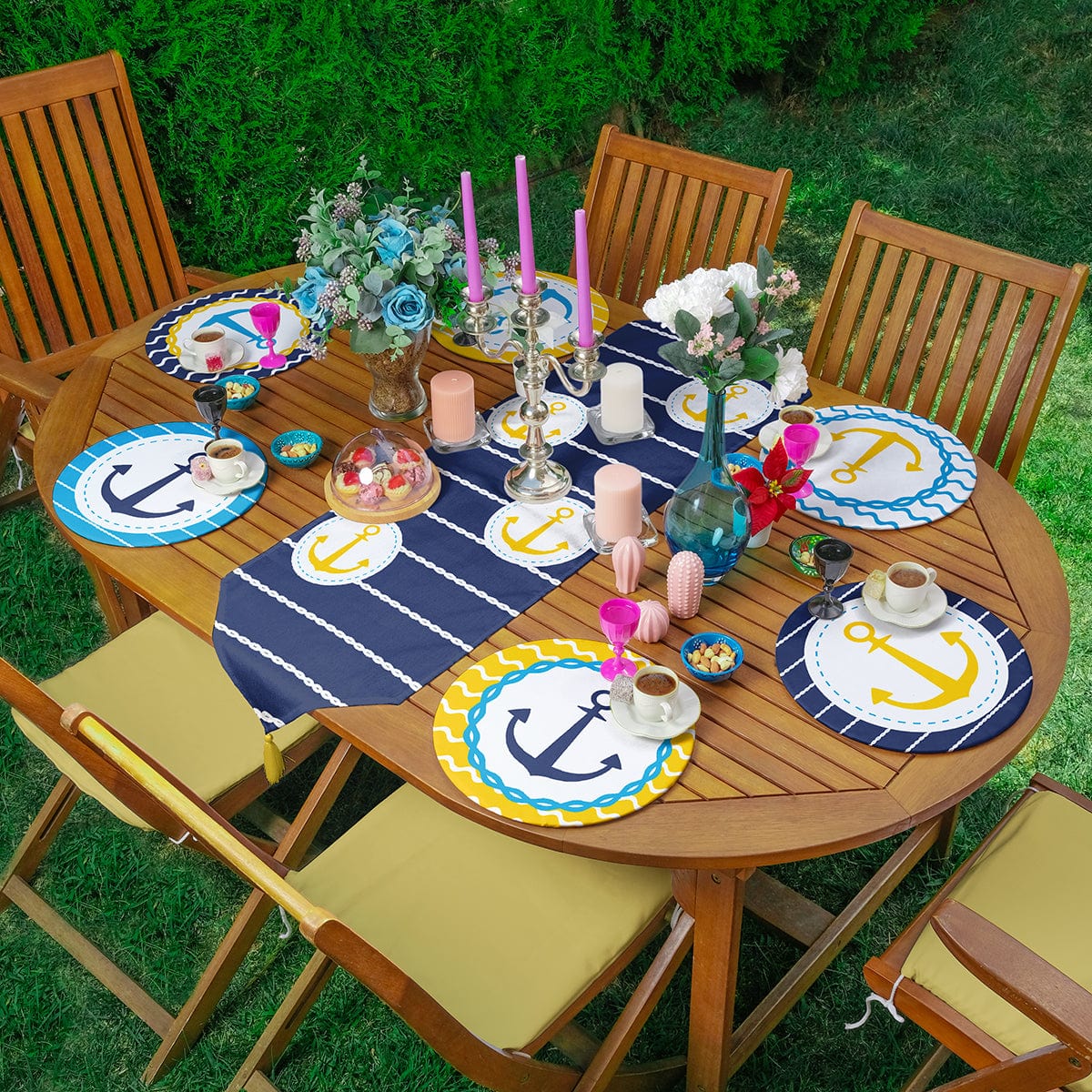 6+1li Mavi ve Sarı Renkli Çapa Tasarımlı Supla Runner Seti