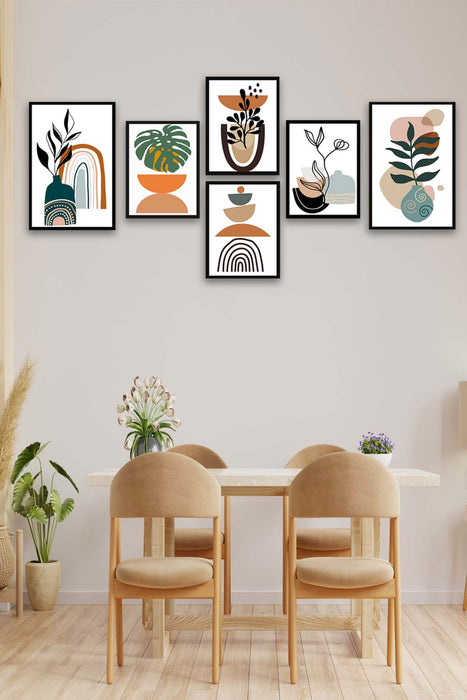 Orijinal World of Walls 6 Parça Sanatsal Bohem Tarzı Siyah Çerçeve Görünümlü Duvar Tablo Seti
