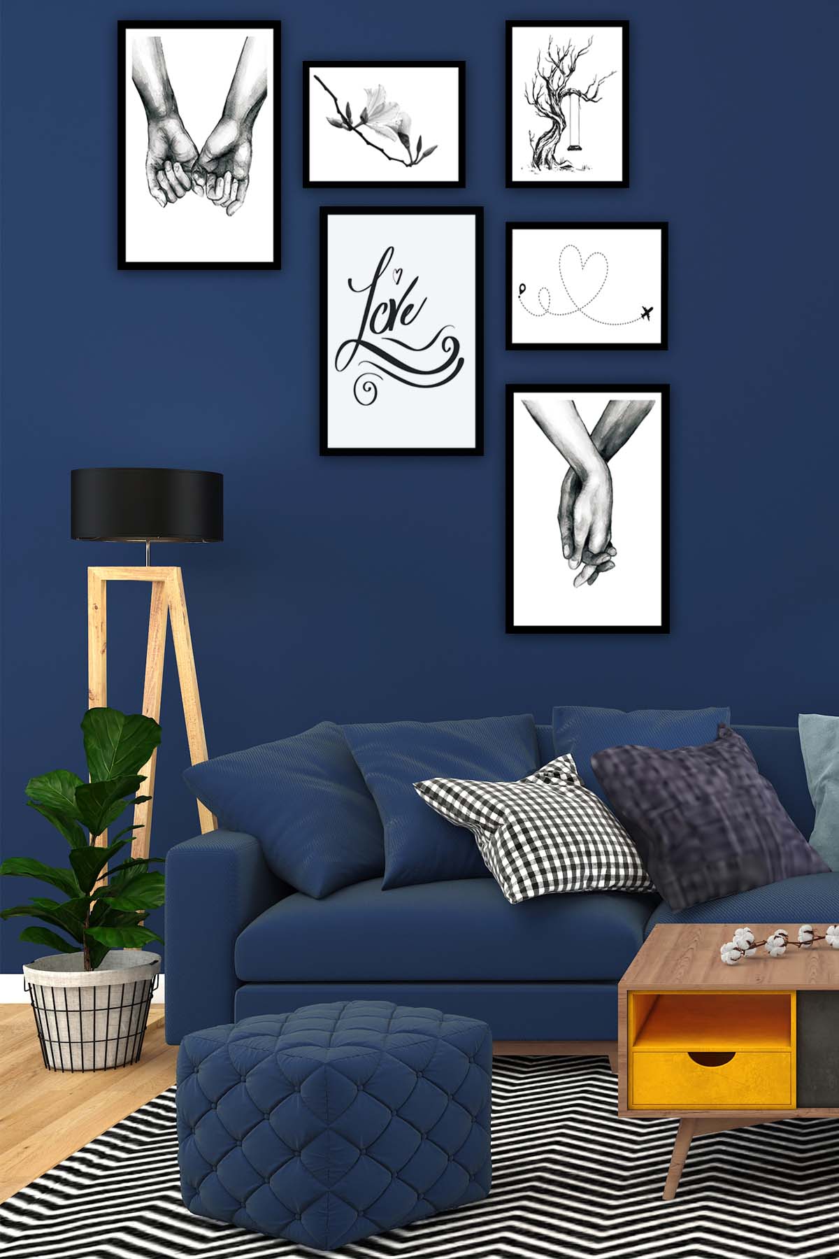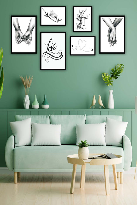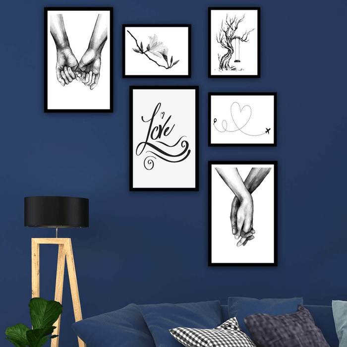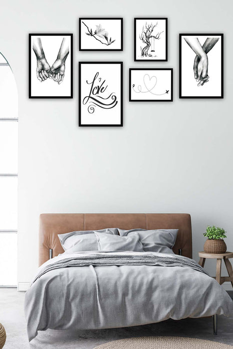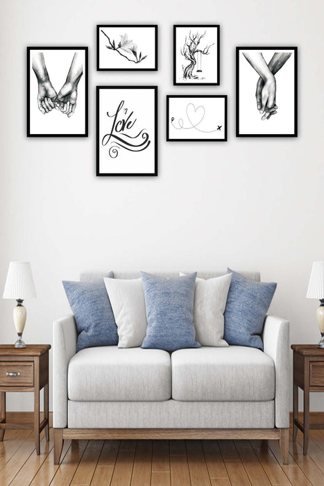 Orijinal World of Walls 6 Parça Siyah Beyaz Sanatsal Çerçeve Görünümlü Duvar Tablo Seti