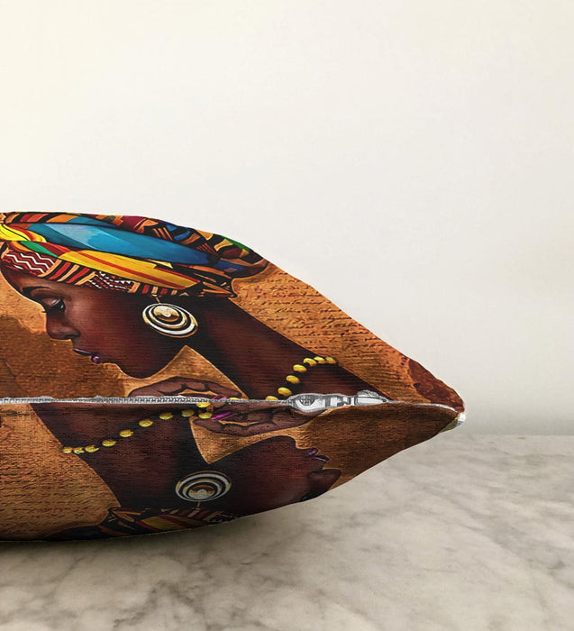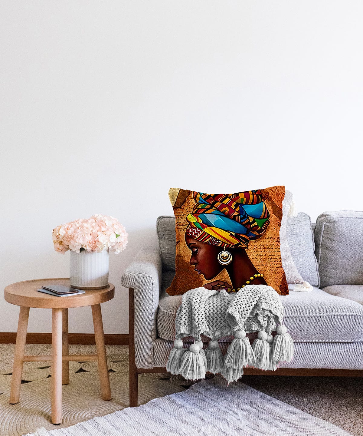 African Woman Çizimli Dijital Baskılı Modern Raşel Kadife Yastık Kırlent Kılıfı
