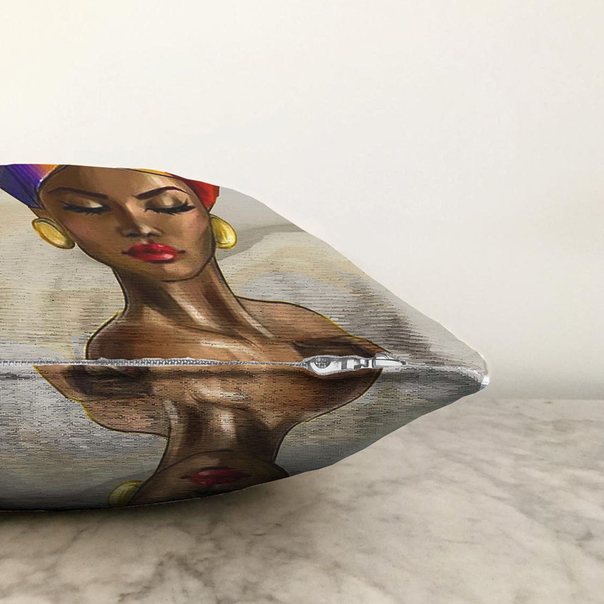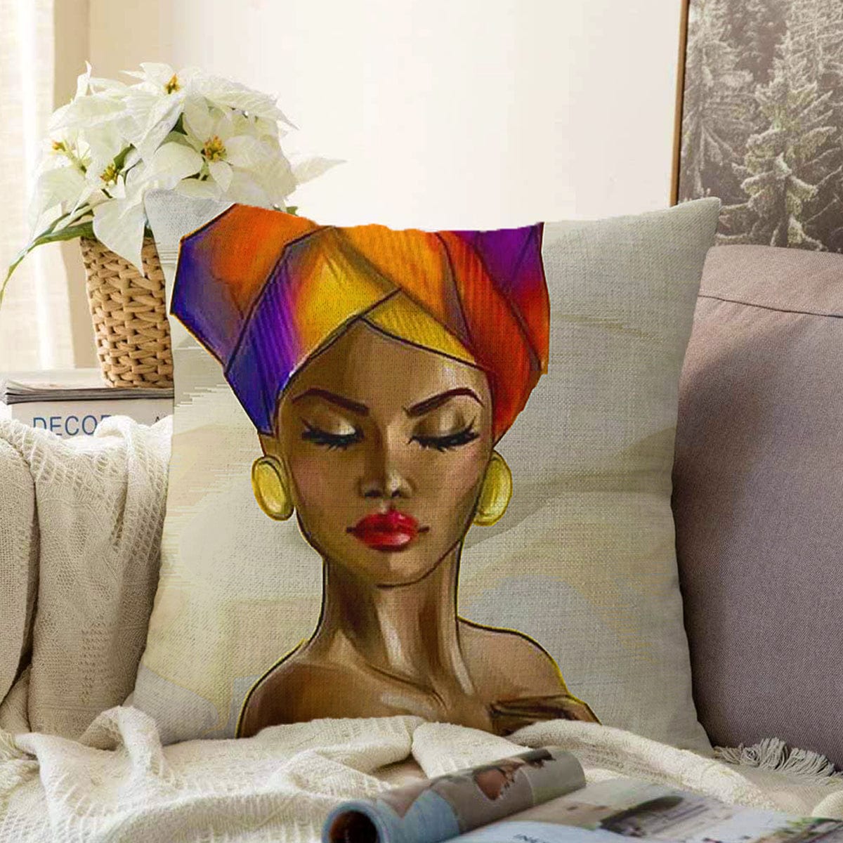 Afrika Kadın İllüstrasyon Motifli Dijital Baskılı Dekoratif Raşel Kadife Yastık Kırlent Kılıfı
