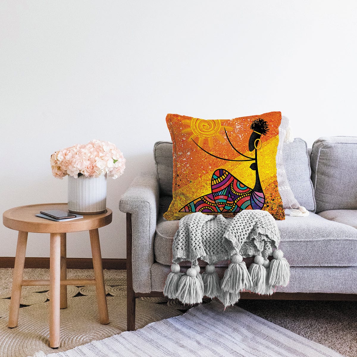 Afrika Kadın İllüstrasyon Motifli Dijital Baskılı Dekoratif Raşel Kadife Yastık Kırlent Kılıfı