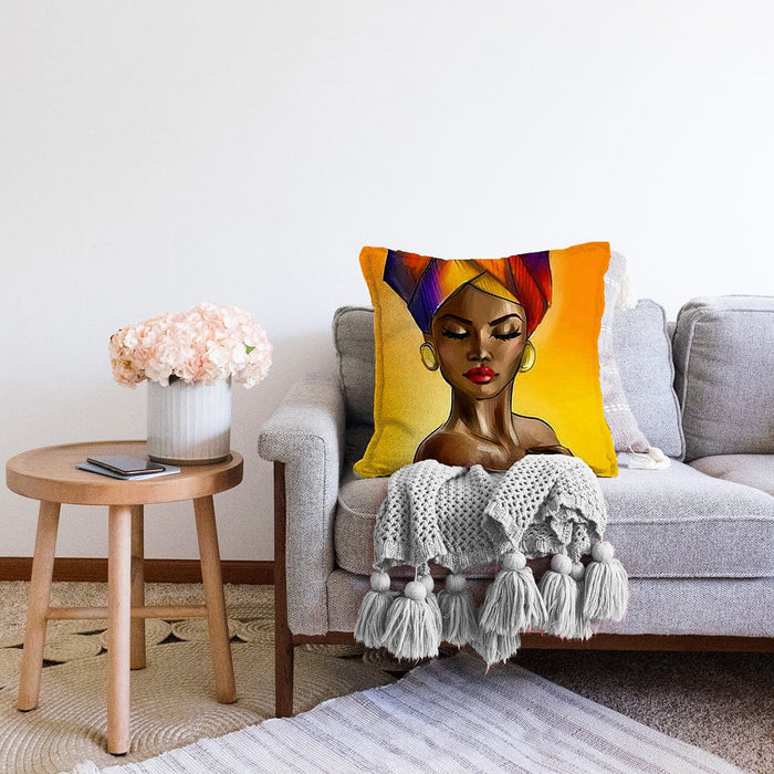 Afrikalı Kadın Çizimi Dijital Baskılı Dekoratif Raşel Kadife Yastık Kırlent Kılıfı