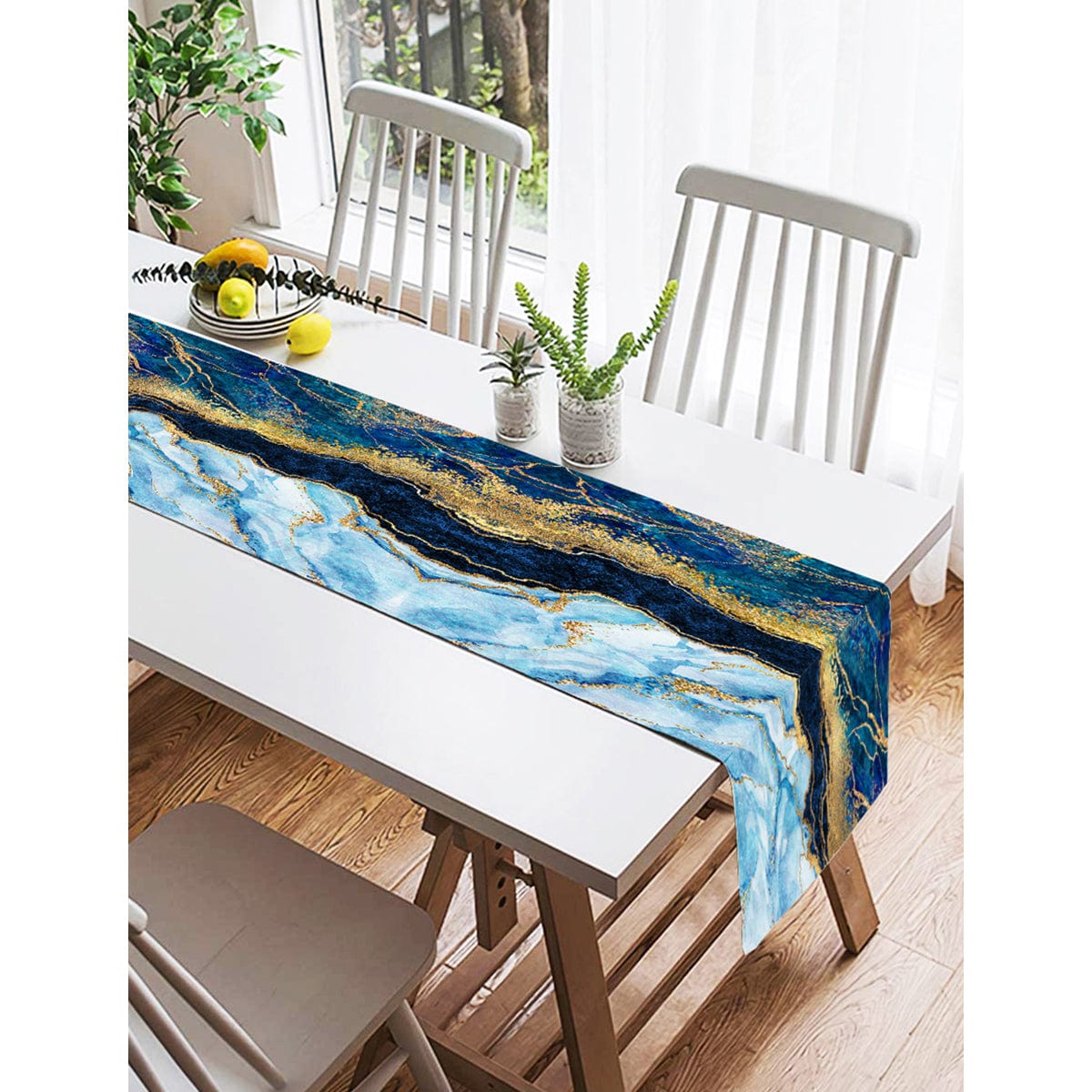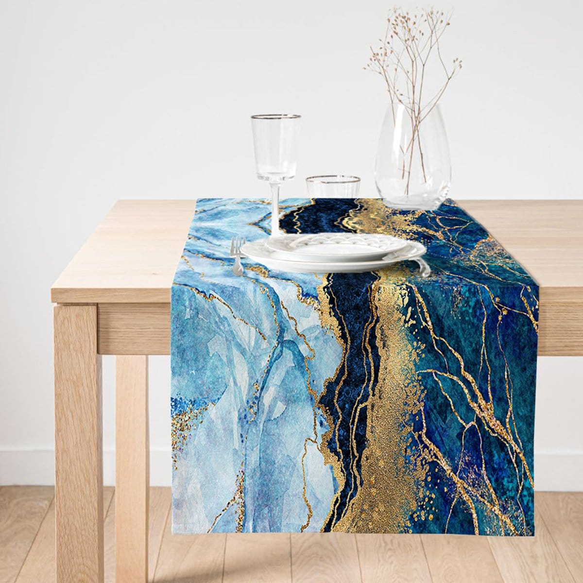 Altın Varaklı Mavi Zeminli Modern Özel Tasarım Süet Runner