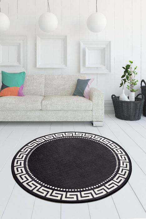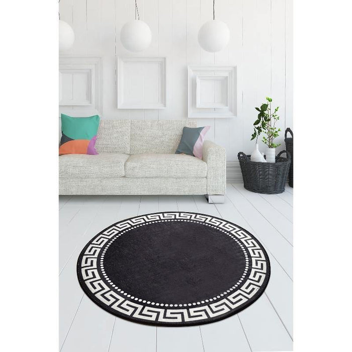 Antik Dijital Baskılı Yuvarlak Kaymaz Taban Halı, Kaymaz Taban, Yıkanabilir