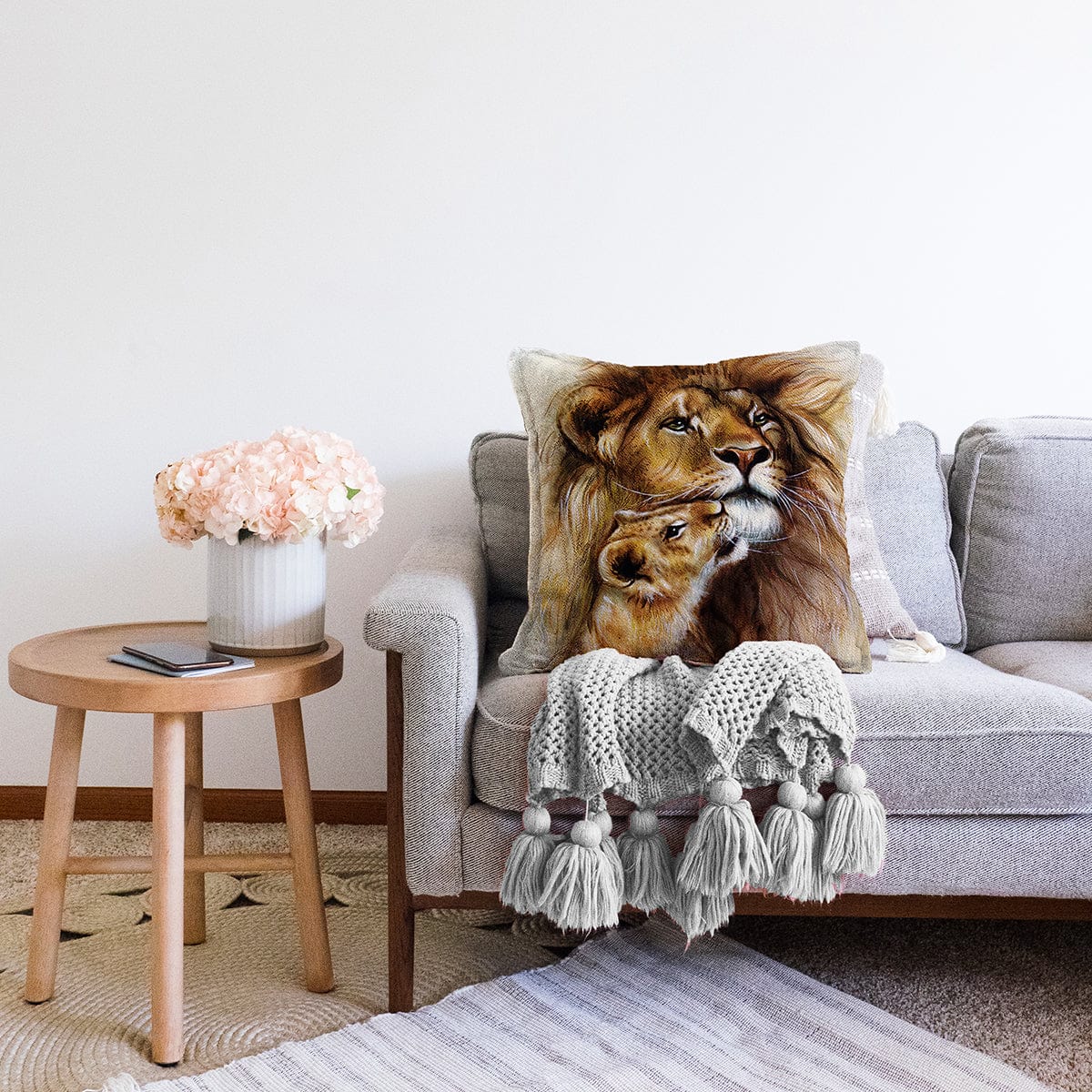 Aslan Desenli Dijital Baskılı Dekoratif Modern Raşel Kadife Yastık Kırlent Kılıfı