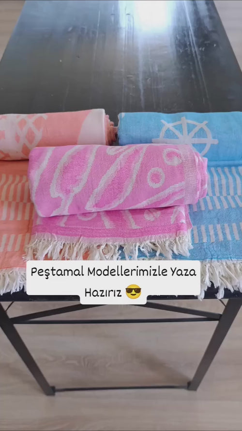 Asur Mavi Peştamal Plaj Havlusu Pamuklu Dokulu Banyo Havlusu 75x100cm