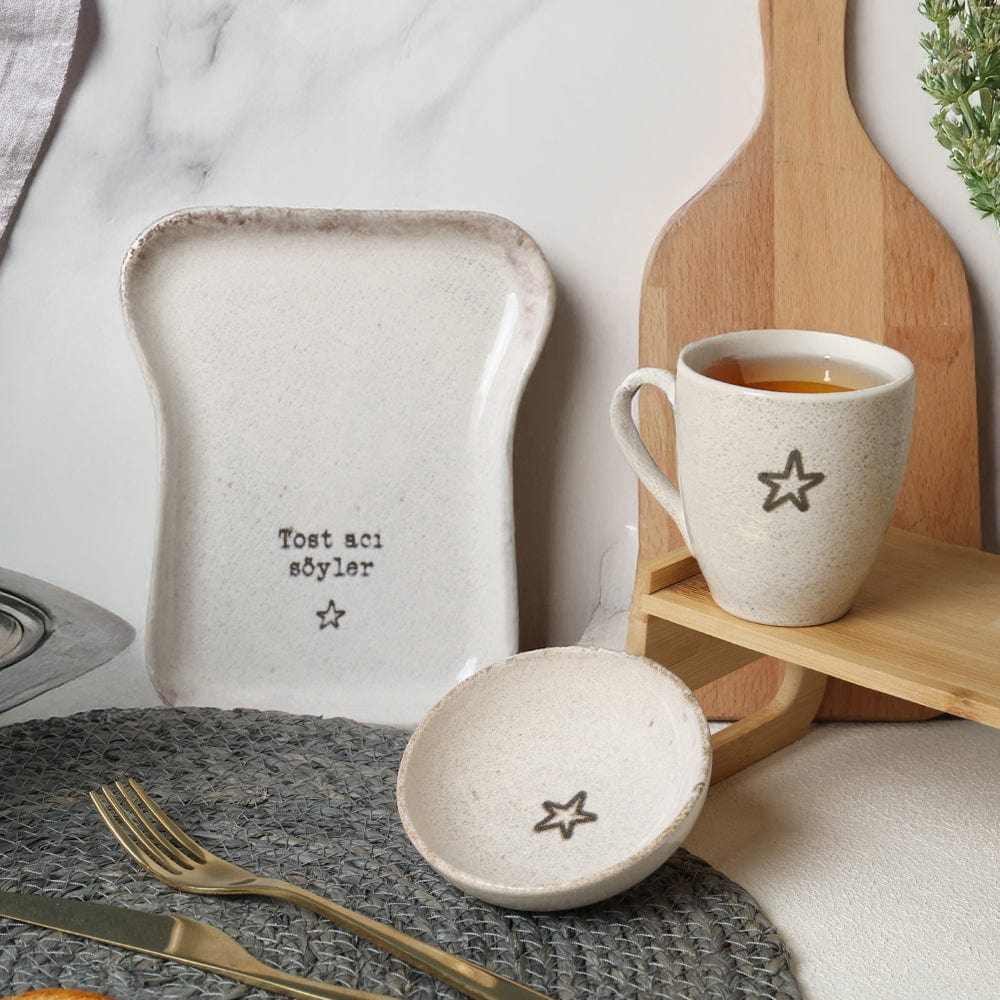 Sofranızda farklılık yaratacak şık bir tasarım arıyorsanız, bu tost tabak seti tam size göre! Hem estetik hem de fonksiyonel olarak günlük kullanımda mükemmel uyum sağlar. Misafirlerinizi etkilemek, sofralarınıza eğlenceli ve farklı bir hava katmak için ideal bir seçenek. Zarif tasarımı ve dikkat çekici şekliyle her türlü masada öne çıkar. Hem estetik hem de kullanışlı bir seçenek arayanlar için ideal. Ürün İçeriği; *1 adet (Ø)= 19 cm Tost Tabağı*1 adet (Ø)= 8 cm Kupa*1 adet (Ø)= 10 cm Çerezlik/ Sosluk• Yüzey Yapısı: Parlak• Malzeme: Stoneware / Earthenware• Renkleri ve baskısı solmaz.• Mikrodalga fırınlarda kullanılabilir.• Kolay temizlenir, mikrop barındırmaz.• Bulaşık makinesinde 50°C'de yıkanabilir.• Tamamen sağlıklı ve ekolojik malzeme yapısına sahiptir.• Türkiye'de üretilmiştir.