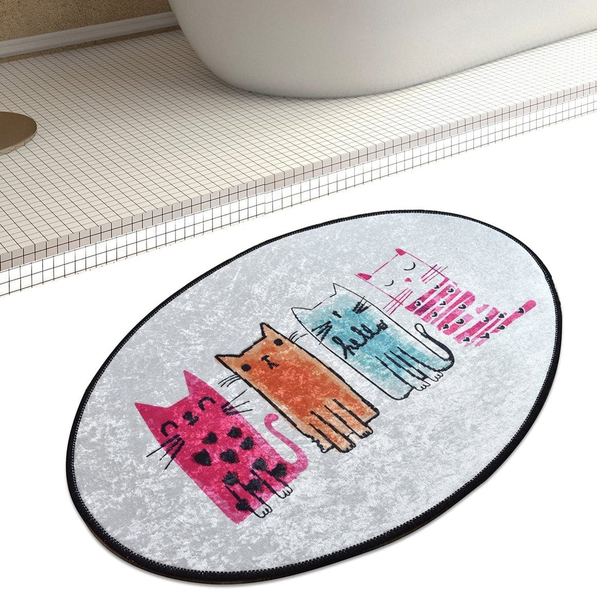 Kediler Baby Cats Oval 60x90cm Dijital Baskılı Halı, Kaymaz Taban, Yıkanabilir