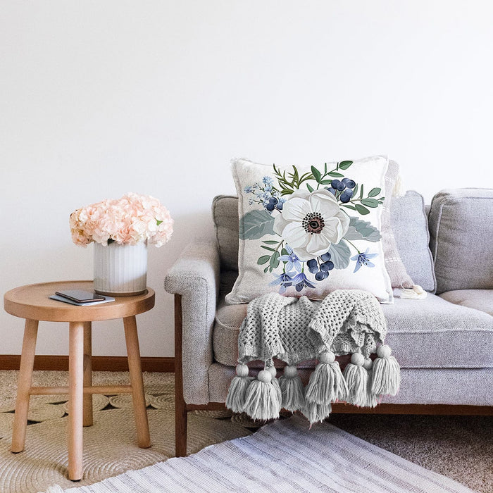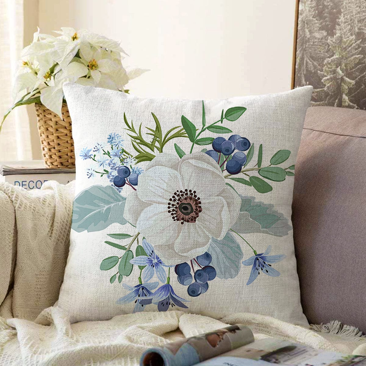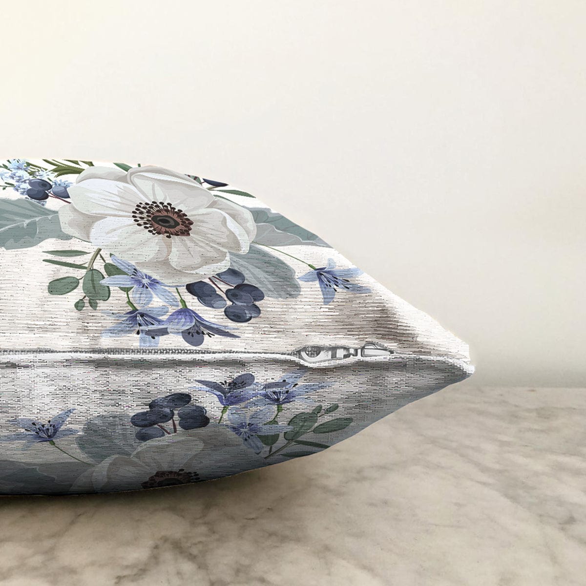 Beyaz Gül Tasarımlı Dijital Baskılı Dekoratif Raşel Kadife Yastık Kırlent Kılıfı