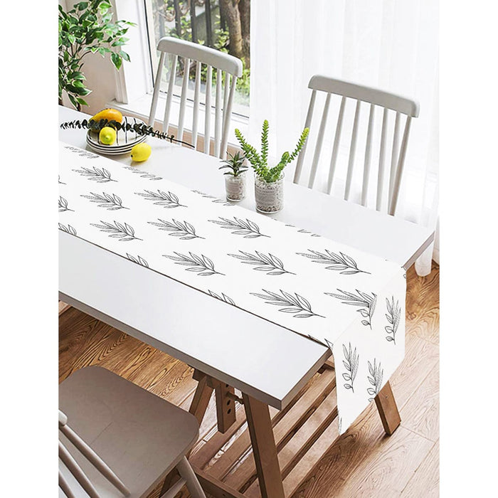 Beyaz Temalı Yaprak Çizimi Motifli Dijital Baskılı Süet Runner