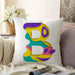 Beyaz Zemin Renkli B Harfli Özel Tasarım Dijital Baskılı Raşel Kadife Yastık Kırlent Kılıfı