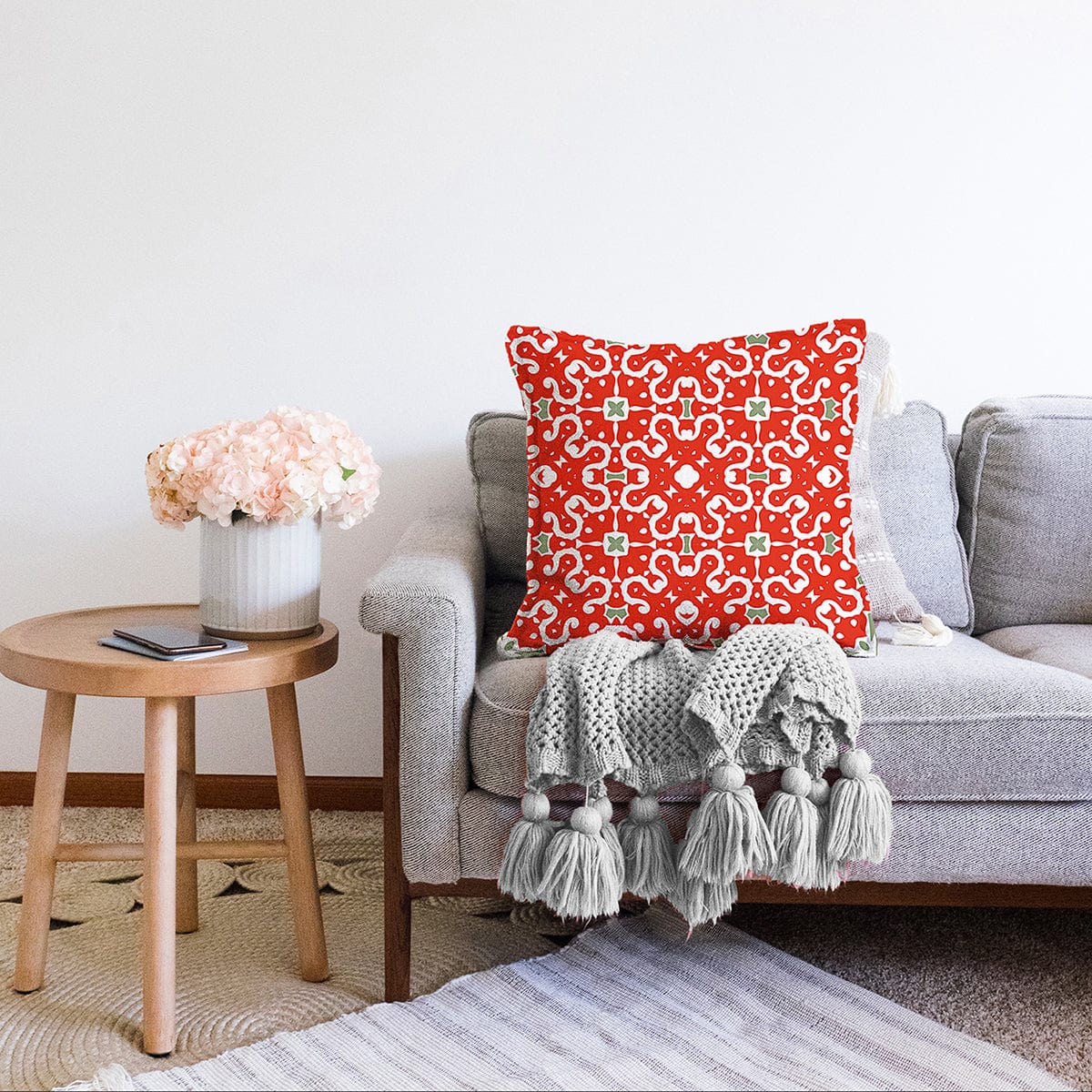 Çini Desenli Kırmızı Dijital Baskılı Modern Raşel Kadife Yastık Kırlent Kılıfı