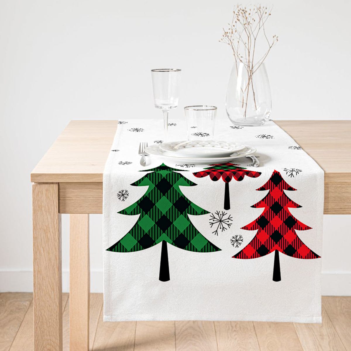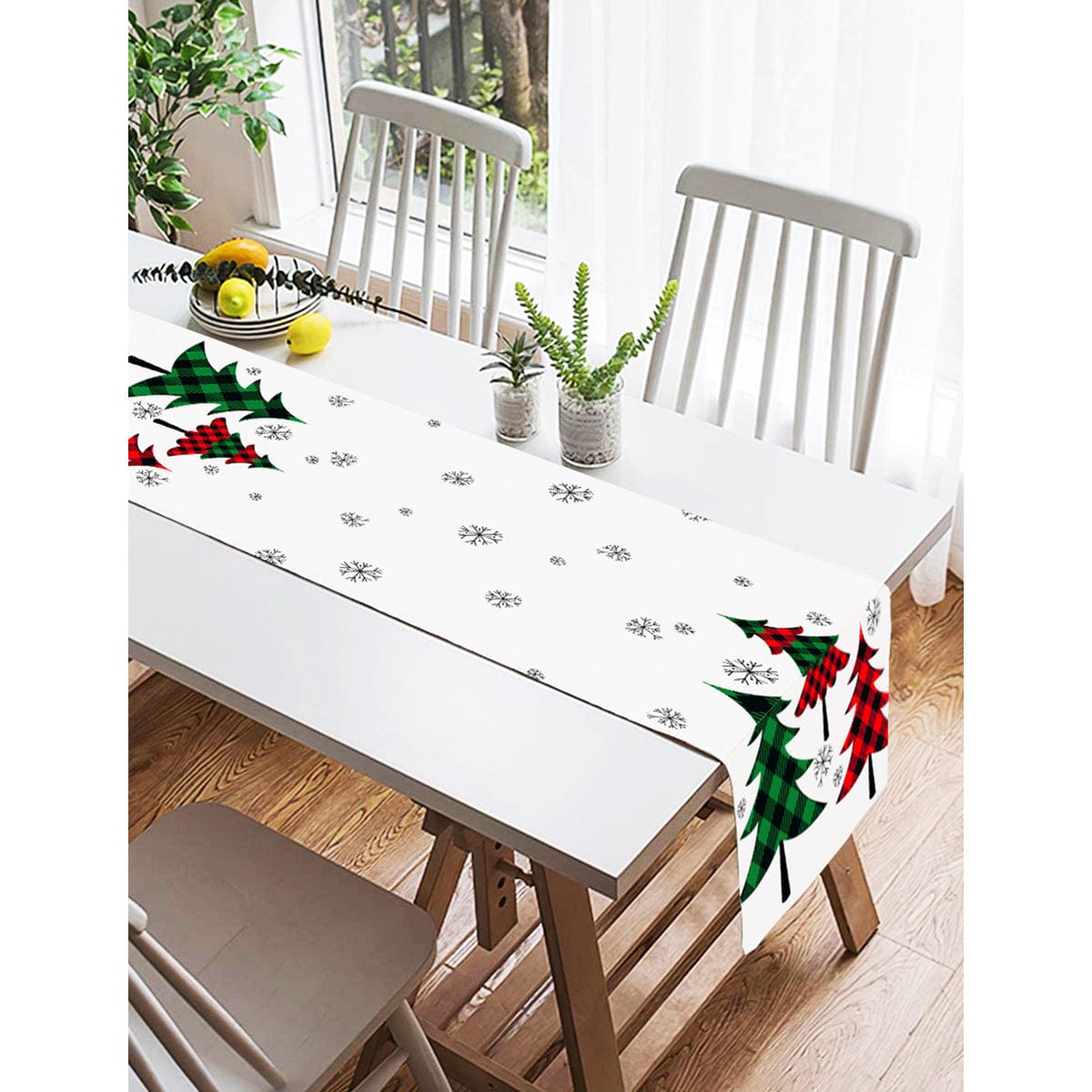 Beyaz Zemin Üzerinde Ekose Desenli Çamağacı Motifli Dijital Baskılı Özel Tasarım Süet Runner