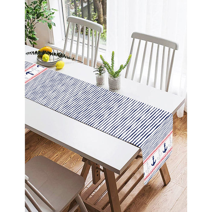Beyaz Zemin Üzerinde Renkli Çizgili Çapa Desenli Dijital Baskılı Özel Tasarım Süet Runner