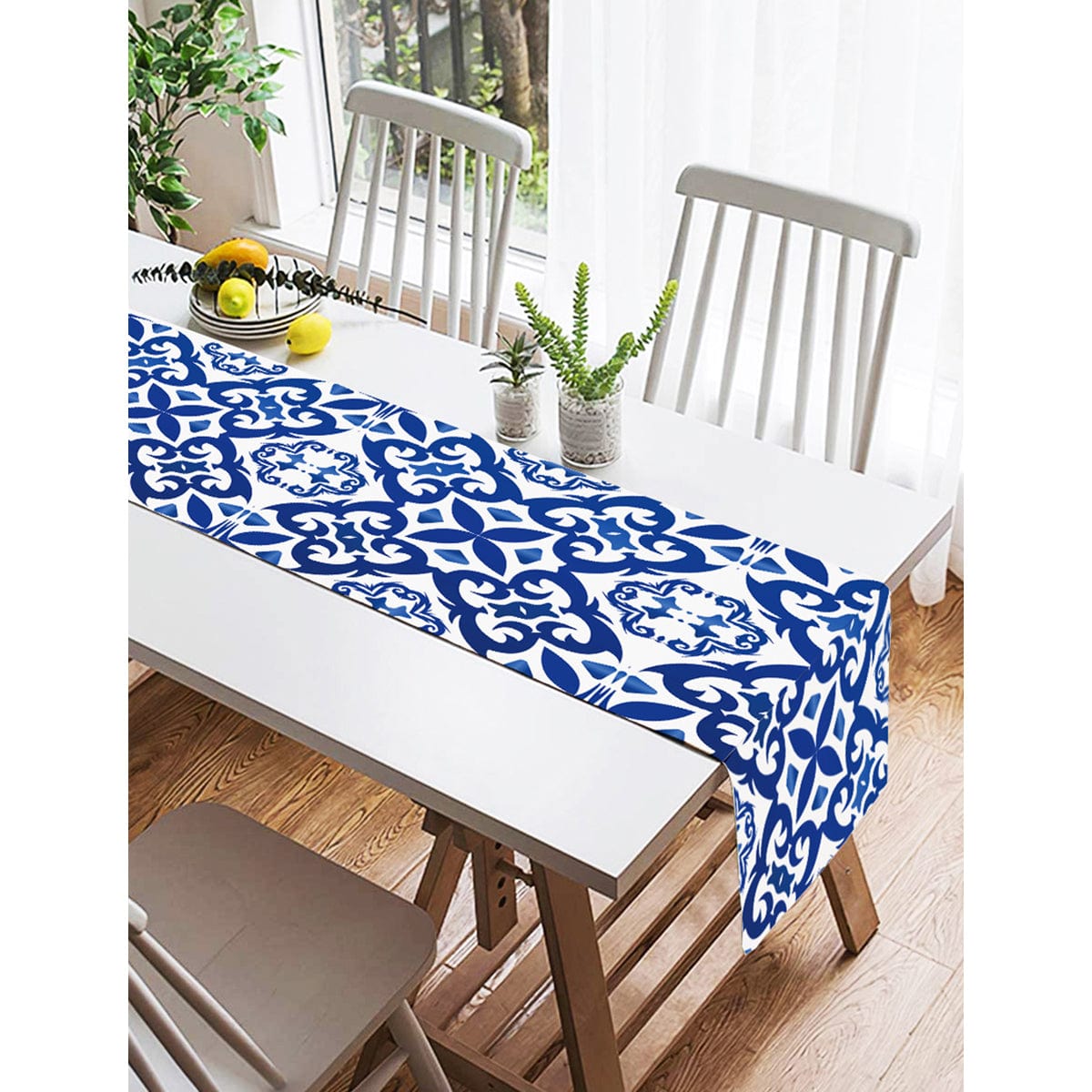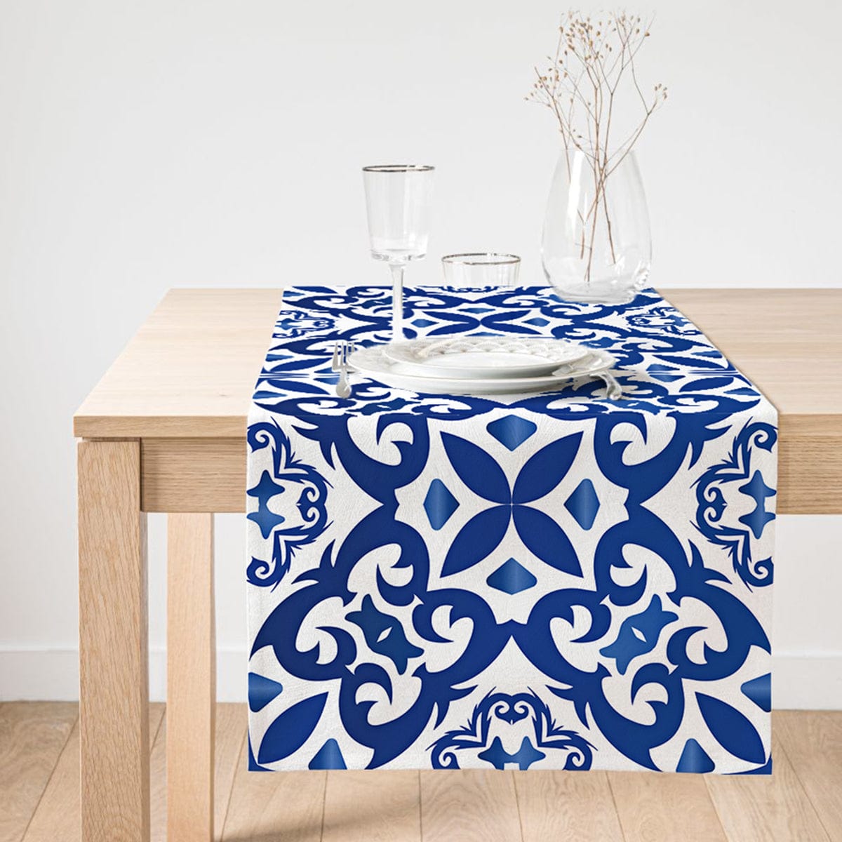 Beyaz Zeminli Çini Desenli Dijital Baskılı Özel Tasarım Süet Runner