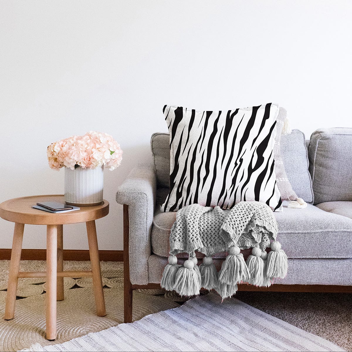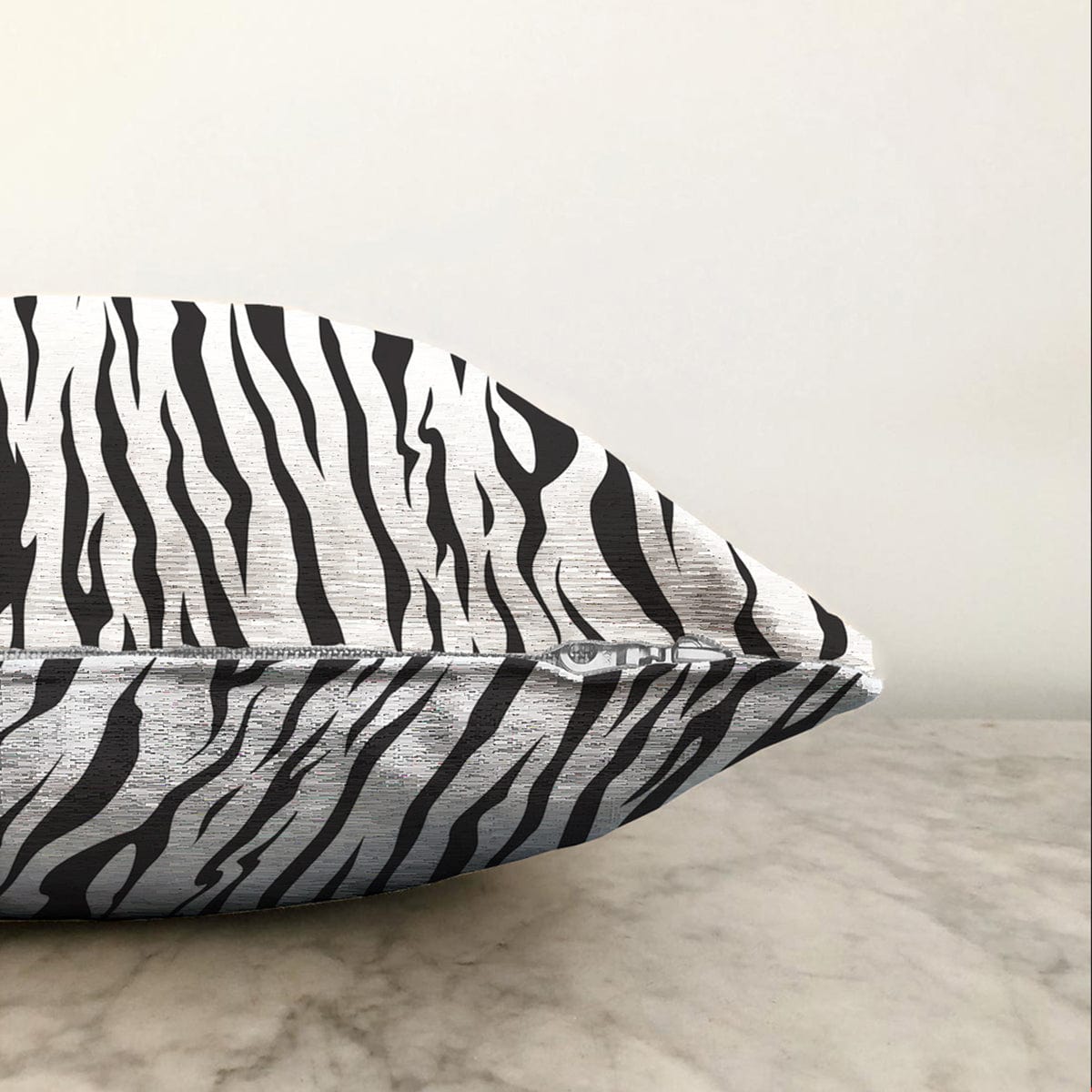 Zebra Siyah Çizgi Desenli Dijital Baskılı Modern Raşel Kadife Yastık Kırlent Kılıfı