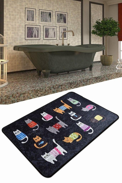 Kediler Black Cats 60x90cm Dijital Baskılı Halı, Kaymaz Taban, Yıkanabilir