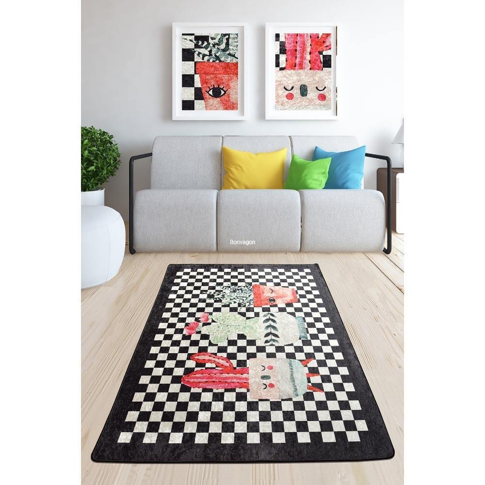Black Happy Cactus Dijital Baskılı Halı, Kaymaz Taban, Yıkanabilir