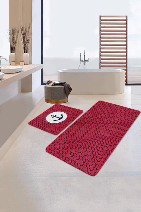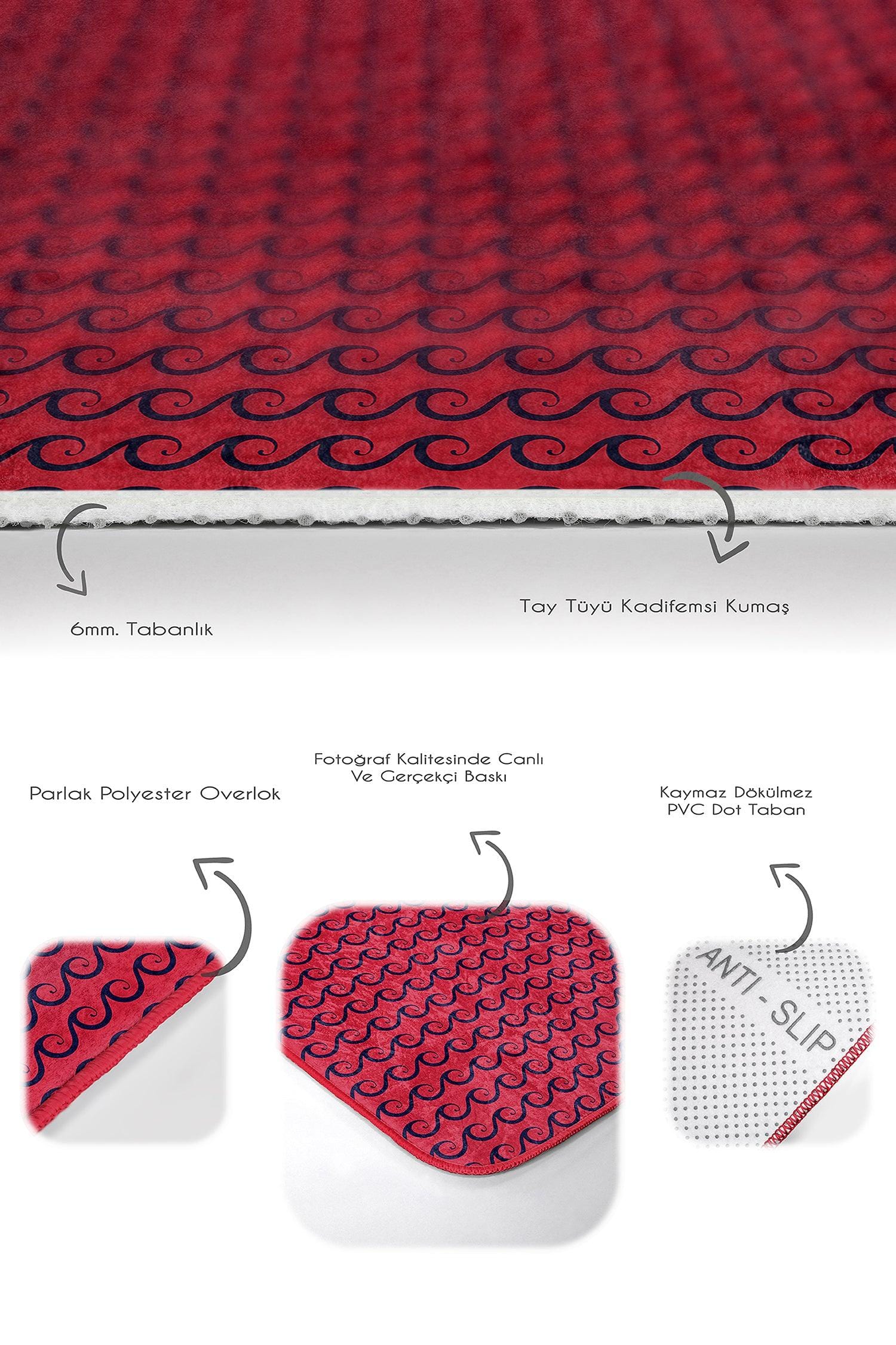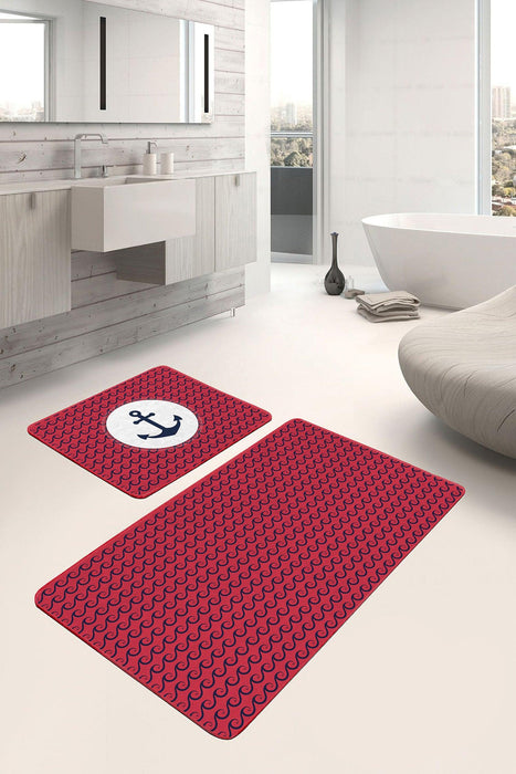 Bordo Zemin Lacivert Dalga Detaylı Özel Tasarım 2li Halı Takımı Kaymaz Taban Yıkanabilir