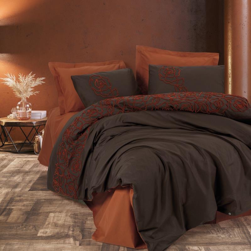Brode Ranforce Çift Kişilik Nevresim Takımı Rosen Kiremit 4 Adet Yastık Kılıfı