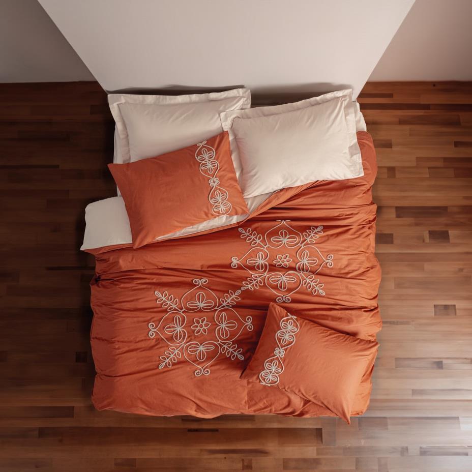 Brode Ranforce Çift Kişilik Nevresim Takımı Triva Bej 4 Adet Yastık Kılıfı