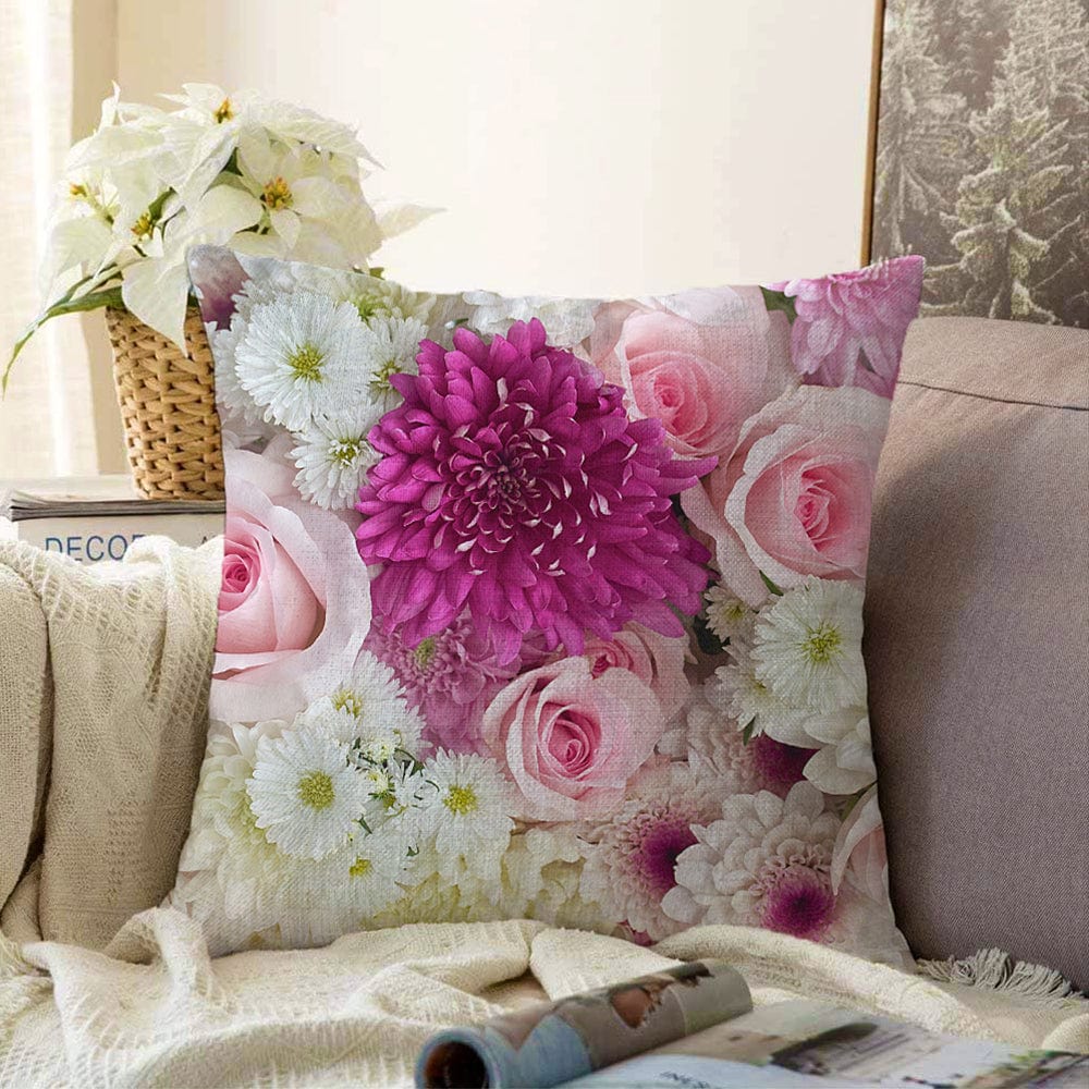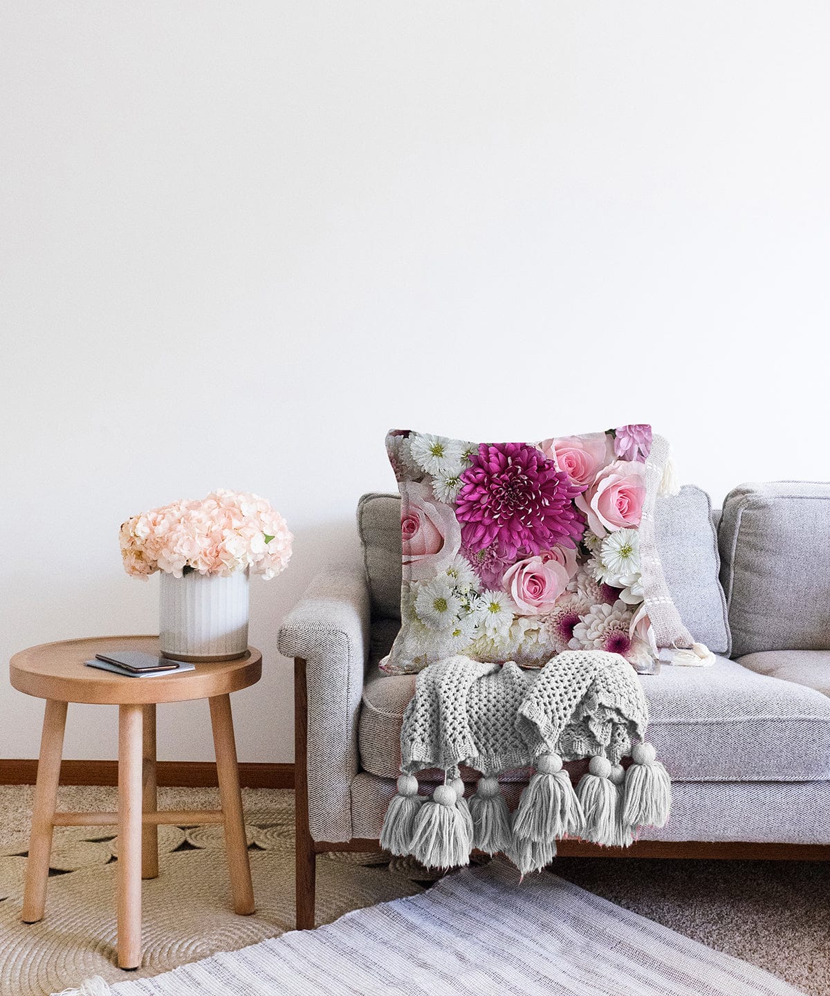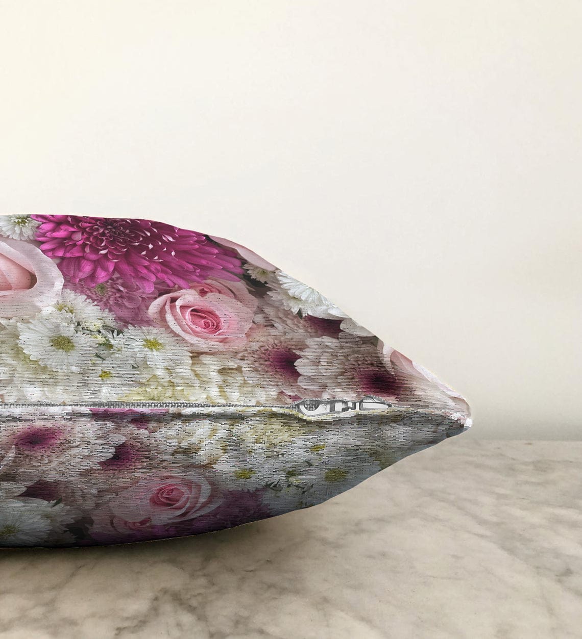 Çiçek Demeti Dijital Baskılı Dekoratif Raşel Kadife Yastık Kırlent Kılıfı