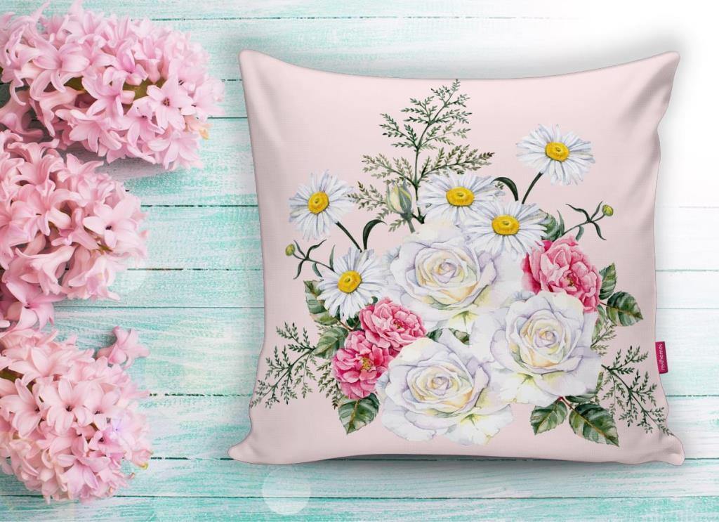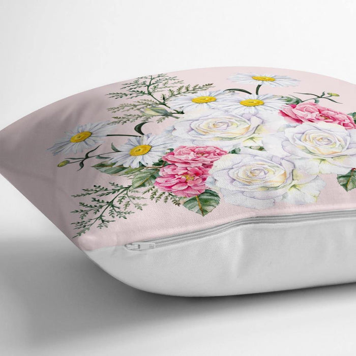 Çiçek Desenli Dijital Baskılı Dekoratif Yastık Kırlent Kılıfı 43x43cm