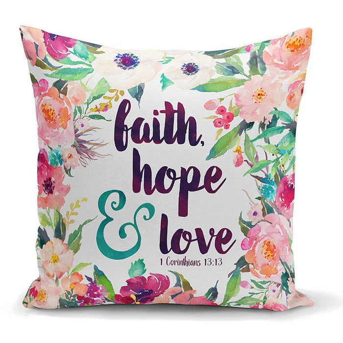Çiçek Desenli Yazılı Dijital Baskılı Dekoratif Yastık Kırlent Kılıfı 43x43cm