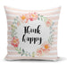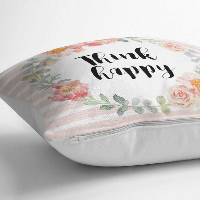 Çiçek Motifli Think Happy Baskılı Yastık Kırlent Kılıfı 43x43cm