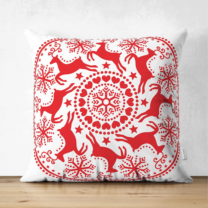 Çift Taraflı Geometrik Yılbaşı Geyikleri Dijital Baskılı Süet Yastık Kırlent Kılıfı