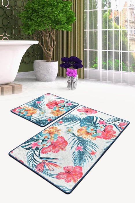 Claire Dijital Baskılı 2li Set Banyo Paspas ve Halısı, Kaymaz Taban, Yıkanabilir