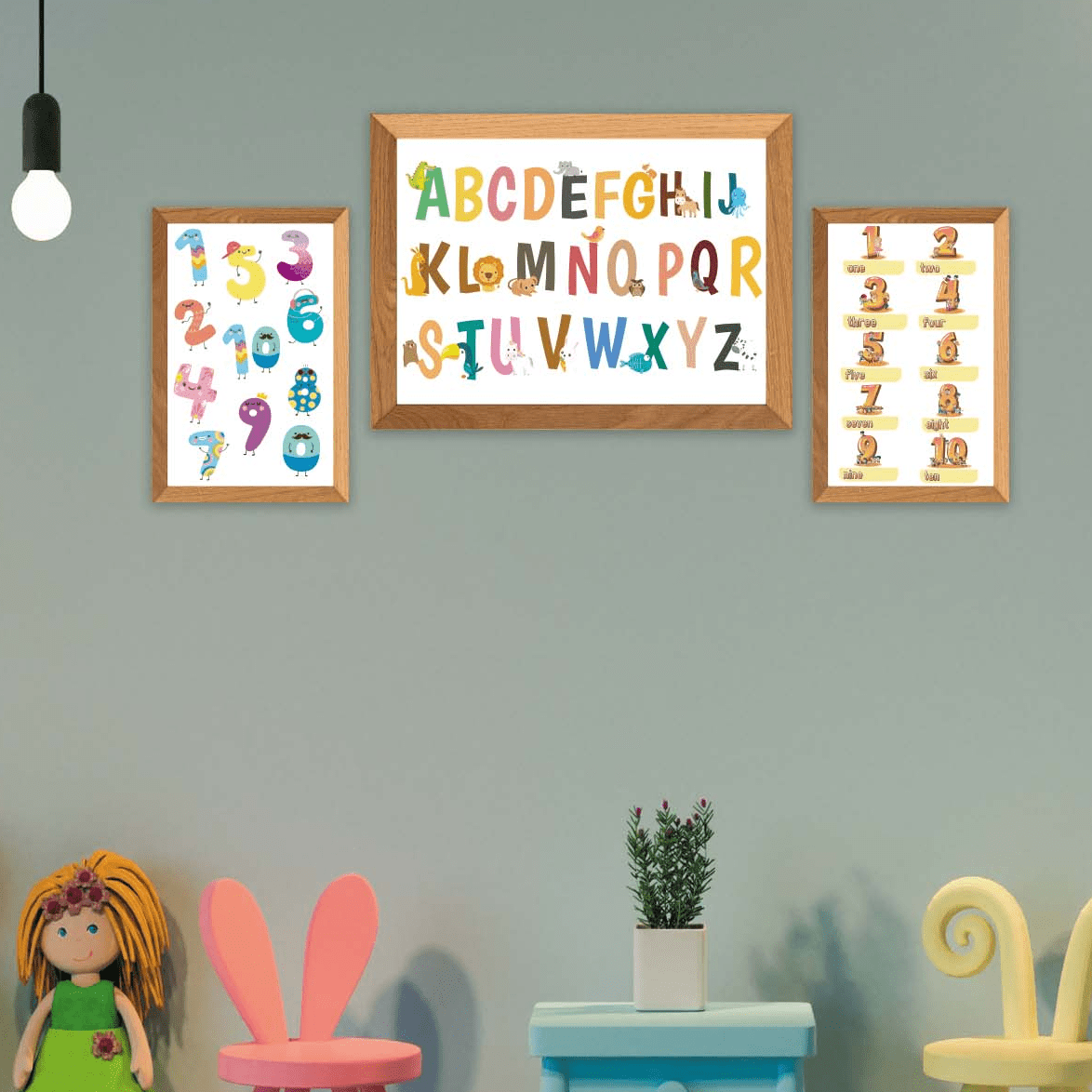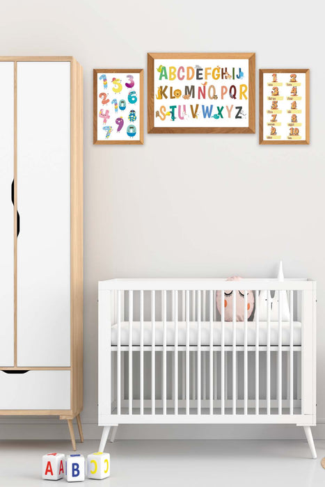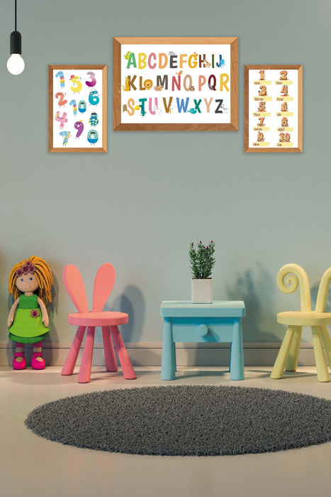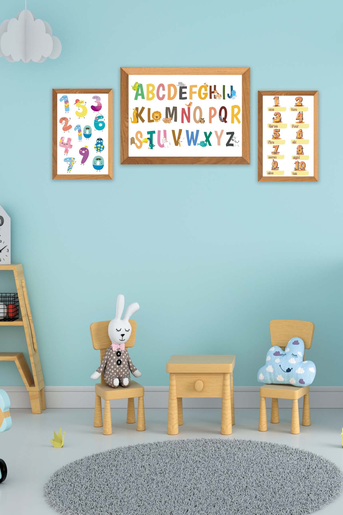 Orijinal World of Walls Çoçuklar İçin Renkli Alfabe Sayılar Eğitici Duvar Tablo Çerçeve Görünümlü Dijital Baskı Duvar Tablo