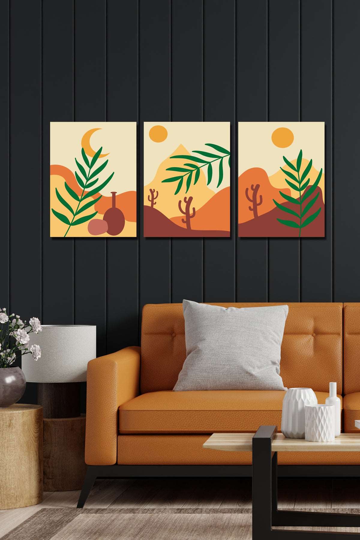 Wow Çöl Manzarası 3 Parça Modern Tarzda Duvar Tablo Seti