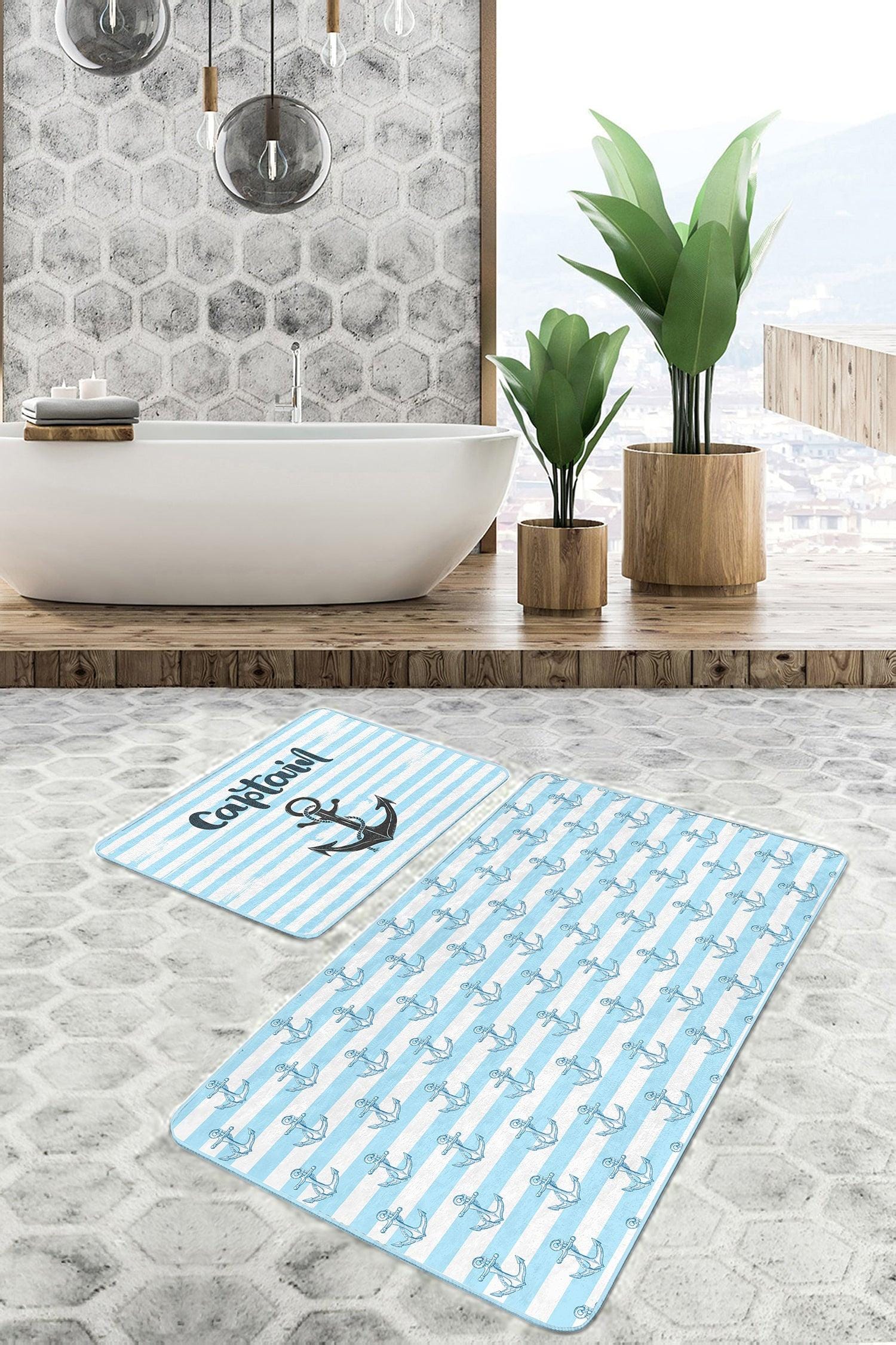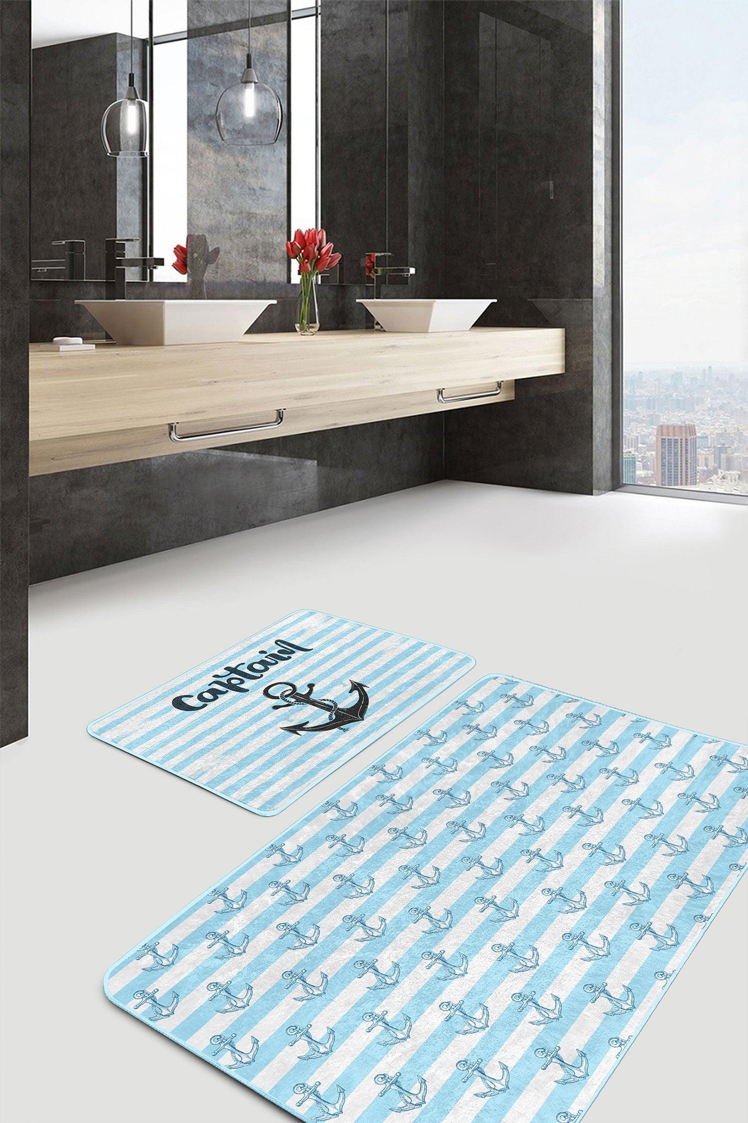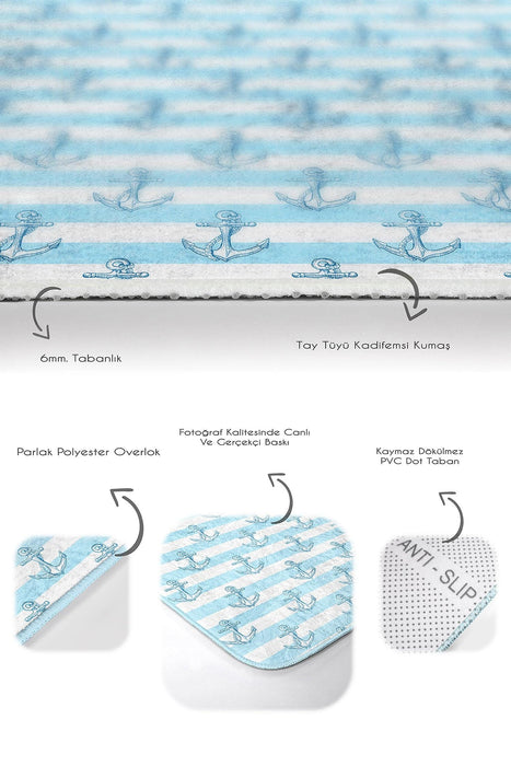 Denizci Temalı Çapa Tasarımlı 2li Halı Takımı Kaymaz Taban Yıkanabilir
