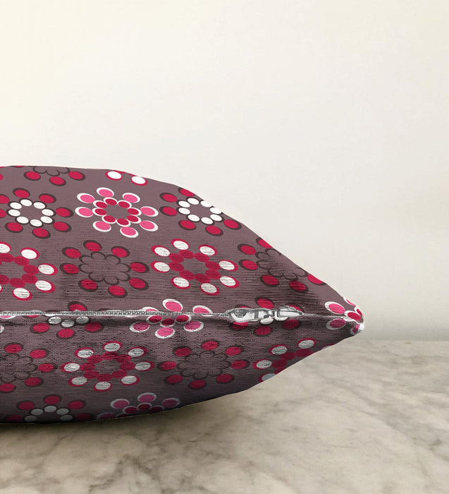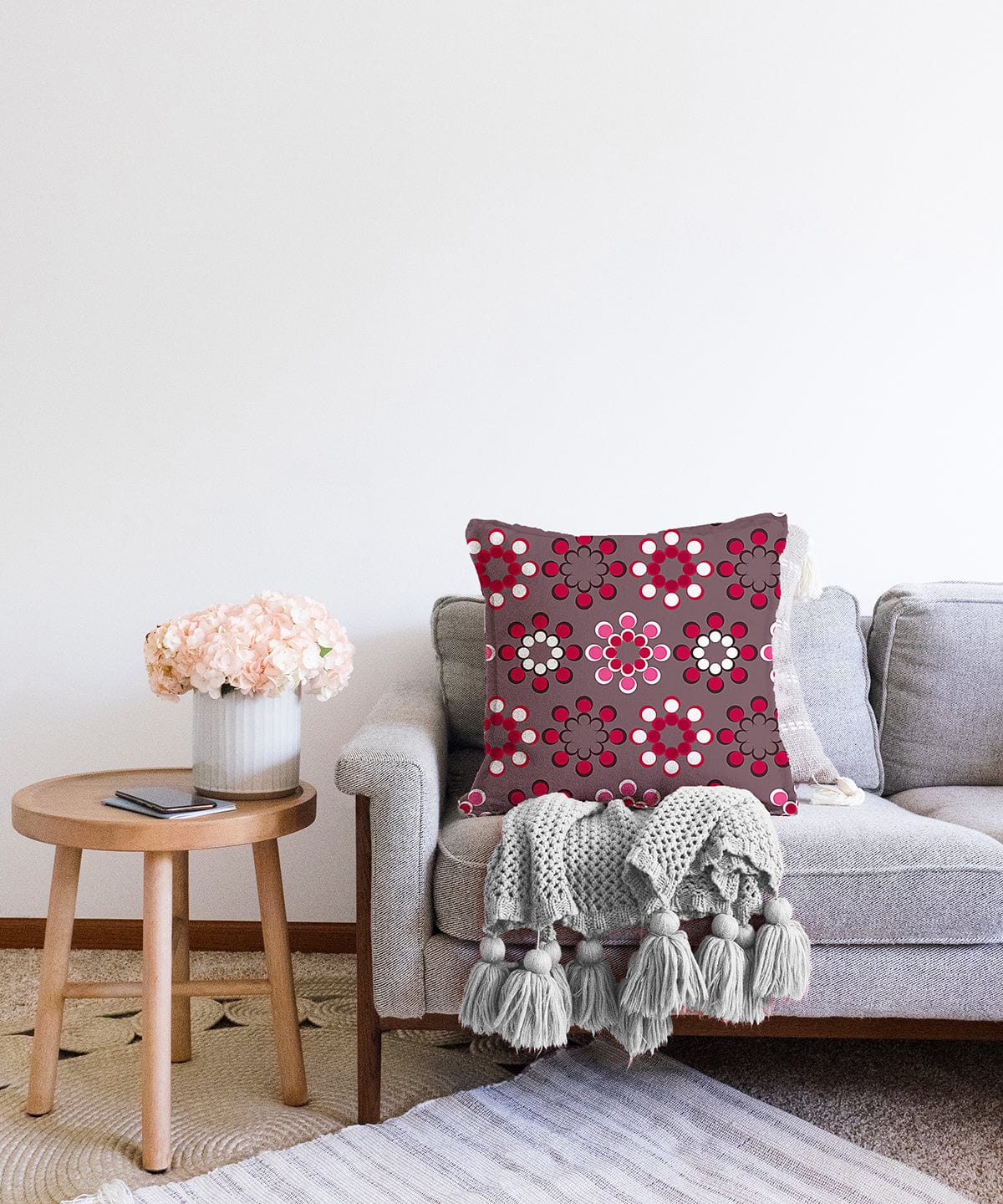 Dijital Baskılı Bordo Çiçekli Raşel Kadife Yastık Kırlent Kılıfı