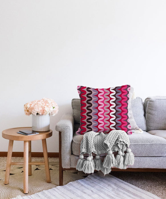 Dijital Baskılı Bordo Dalgalı Desen Raşel Kadife Yastık Kırlent Kılıfı