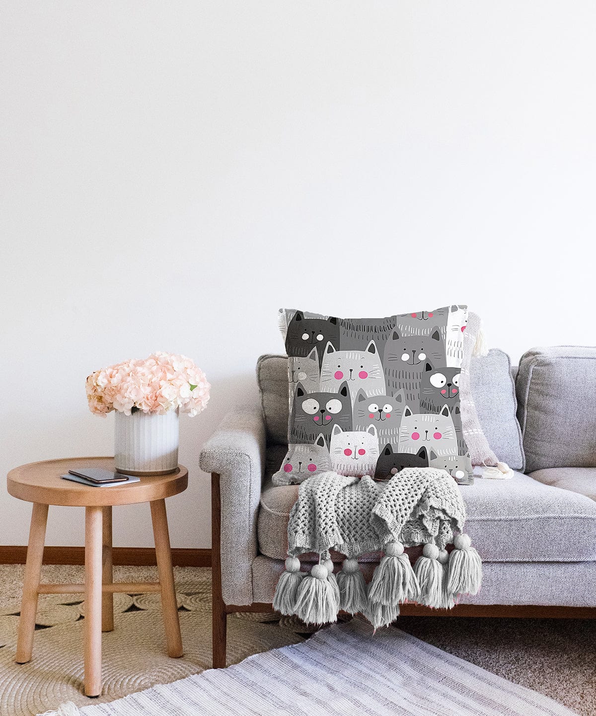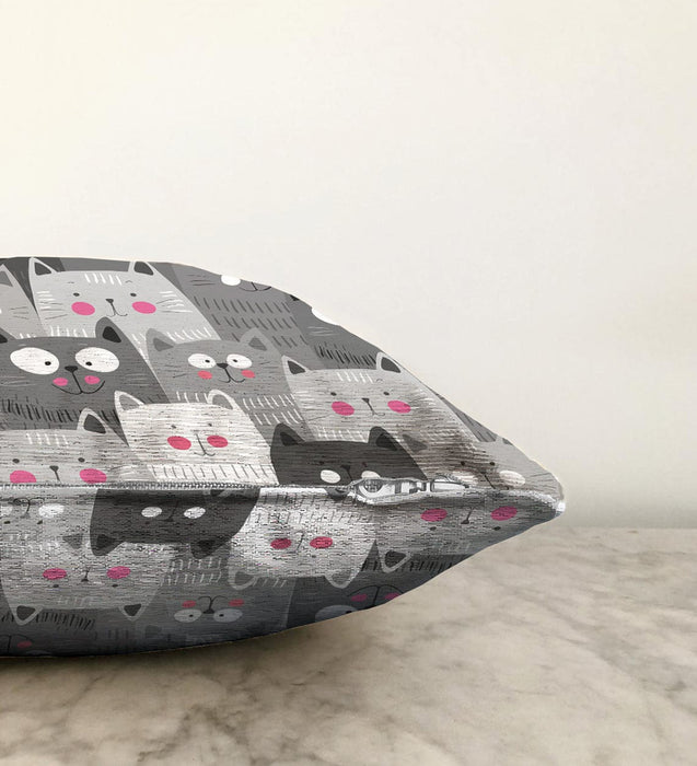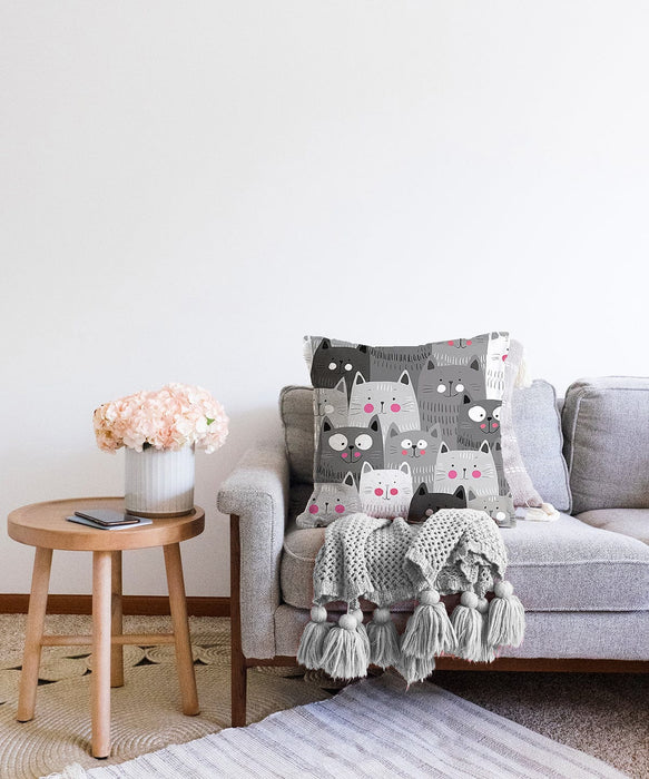 Kediler Gri Dijital Baskılı Raşel Kadife Yastık Kırlent Kılıfı