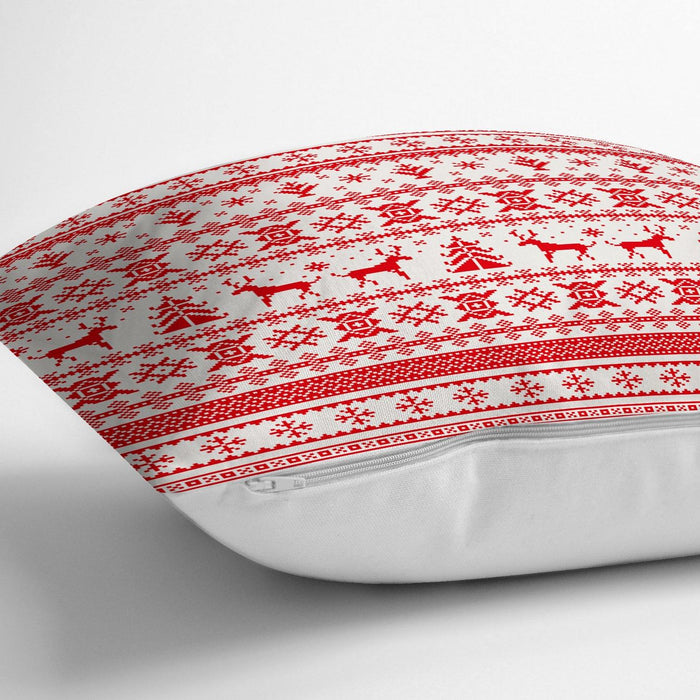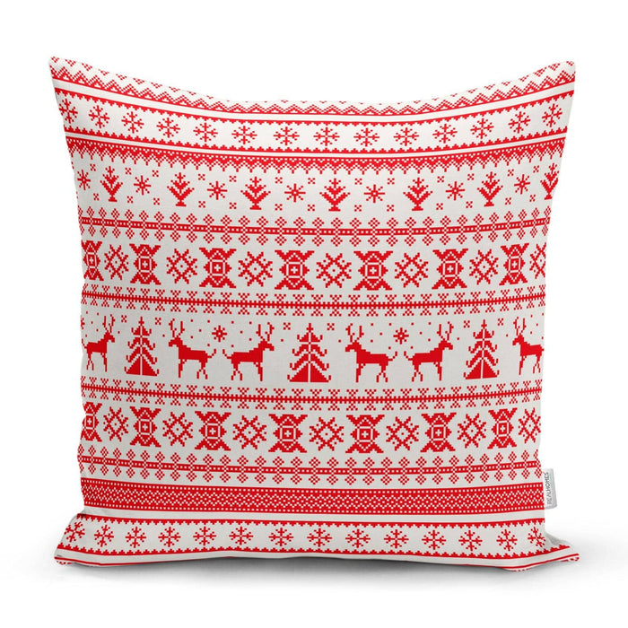 Ekose Dokuma Desenli Yılbaşı Temalı Yastık Kırlent Kılıfı 43x43cm